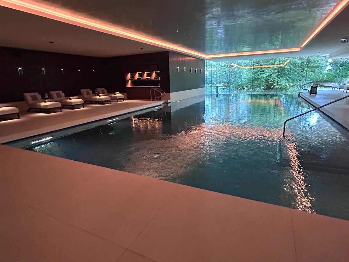 Later, I headed over to The Padel Club, a wellness and sports facility that opened in 2020, for a quick swim and sauna. An oasis of peace, it features a 17-meter swimming pool with a hydro pool at the end (the massaging jets were amazing!) and one glass wall to bring the outside in for an even more zen experience. The facility is available to all guests and also includes two padel tennis courts, a steam room, sauna, gym, yoga studio and sports simulation room.