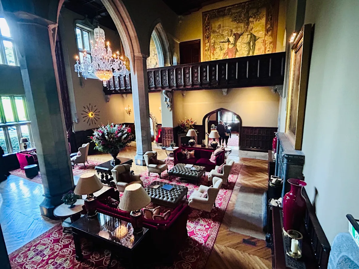 Stepping into The Great Hall Reception sets the tone for your stay. It features a soaring, wood-paneled ceiling adorned with intricate details, a grand fireplace (sadly no fire though since I visited in August) and a plush seating area that invites you to relax and unwind. Despite its enormous size, there are only 103 rooms and eight suites at Adare, categorized as Deluxe Rooms, Staterooms and Suites. For larger groups or families, there are also three to four bedroom villas on the grounds just 15 minutes from the Manor house.