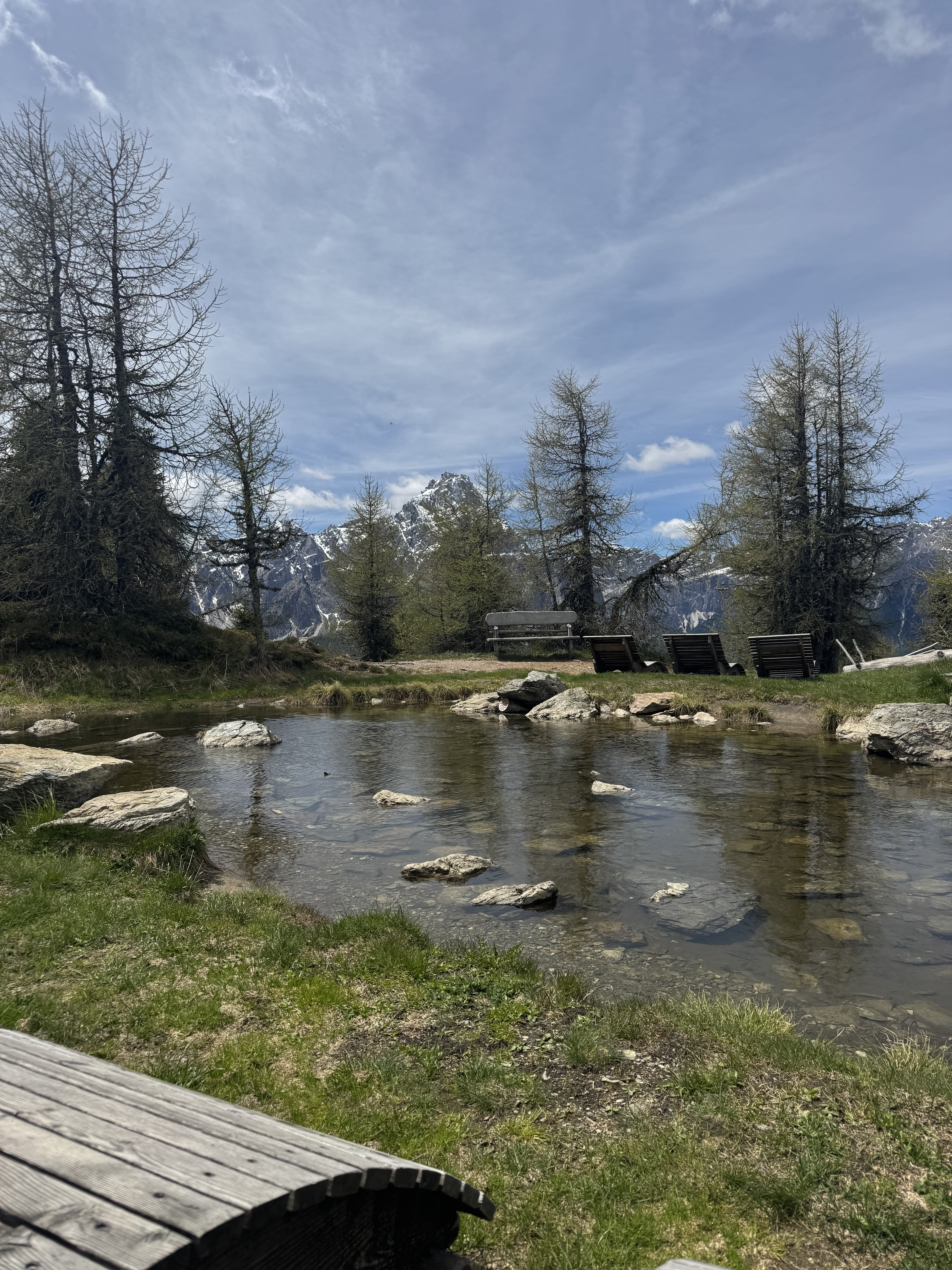 Easily accessible by train or car, the city of Bolzano/Bozen, is a convenient place to get to if you are flying into Milan to begin your adventure. Stay in town or head up into the hills via the gondola to stay in Renon/Ritten at the Adler Lodge. Or just ride up for the day. You’ll know you’ve arrived in the Dolomites because you’ll see them all around you from the top. Explore other nearby towns like Merano/Meran where you can prepare your mind and body with an “introductory” hike in the hills surrounding; my favorite was the Knottnkino (conceived by artist Franz Messner. You’ll be able to sit on one of 30 cinema seats built into the ridge to take in the natural and evolving landscape, aka, “the film.”) Sooth your legs with a soak in the thermal waters of Theme Merano after the trek. The area, Alto Adige/South Tyrol is also one of Italy’s many wine regions. Make a reservation at the Restaurant Löwengrube—around since 1543—its longevity will make sense after your gourmet meal. After dinner, grab a spritz or negroni by the pool at the Park Mondschein Hotel.
