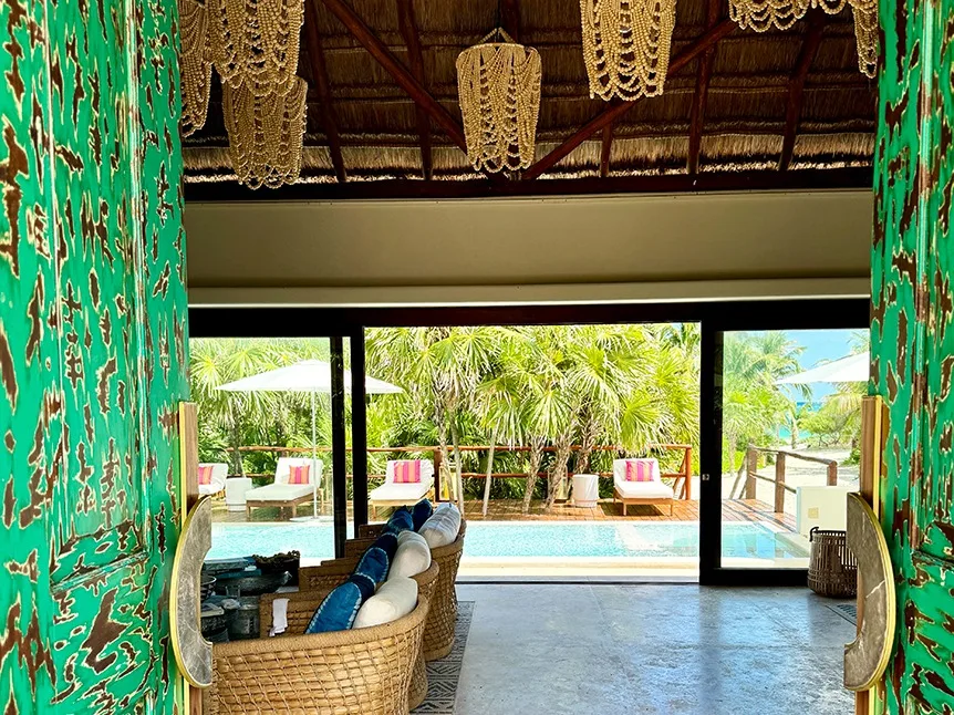 On a recent trip to Tulum, my husband and I sought out the authentic natural beauty that once defined this region before it became a popular hotspot. We ventured off the beaten path down a bumpy dirt road into the Sian Ka'an Nature Preserve, a UNESCO site, escaping the noise and lights of the tourist areas. After two hours, we had the privilege of a bespoke guided tour of Casa Chable. It is an award-winning luxury property nestled between the Sian Ka'an freshwater canals and the clear turquoise waters of the Caribbean with powdery white sand beaches. Still relatively under-the-radar, Casa Chable is a hidden gem in an area often referred to as “the Maldives of Mexico.” It offers a luxurious island paradise accessible via a two-hour off-road ride or a 30-minute chartered boat journey through the tranquil canals.