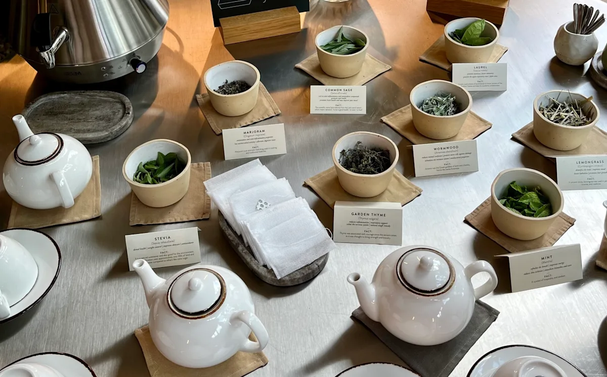 Spa and fitness center: Wellness is very important at Maslina, so they’ve put a lot of effort into this beautifully designed building. Because it was our honeymoon, we treated ourselves to a 2-hour couples treatment at the spa – it was outstanding. It included sound-healing, massage and facial treatments that all left us feeling brand new. Afterward, we sat by the hot pool and drank tea made from the fresh herbs grown in Maslina’s garden. This was one of my favorite things at the spa. They had bowls of different herbs set out with little teabags to put them in, so you could create your own concoctions.