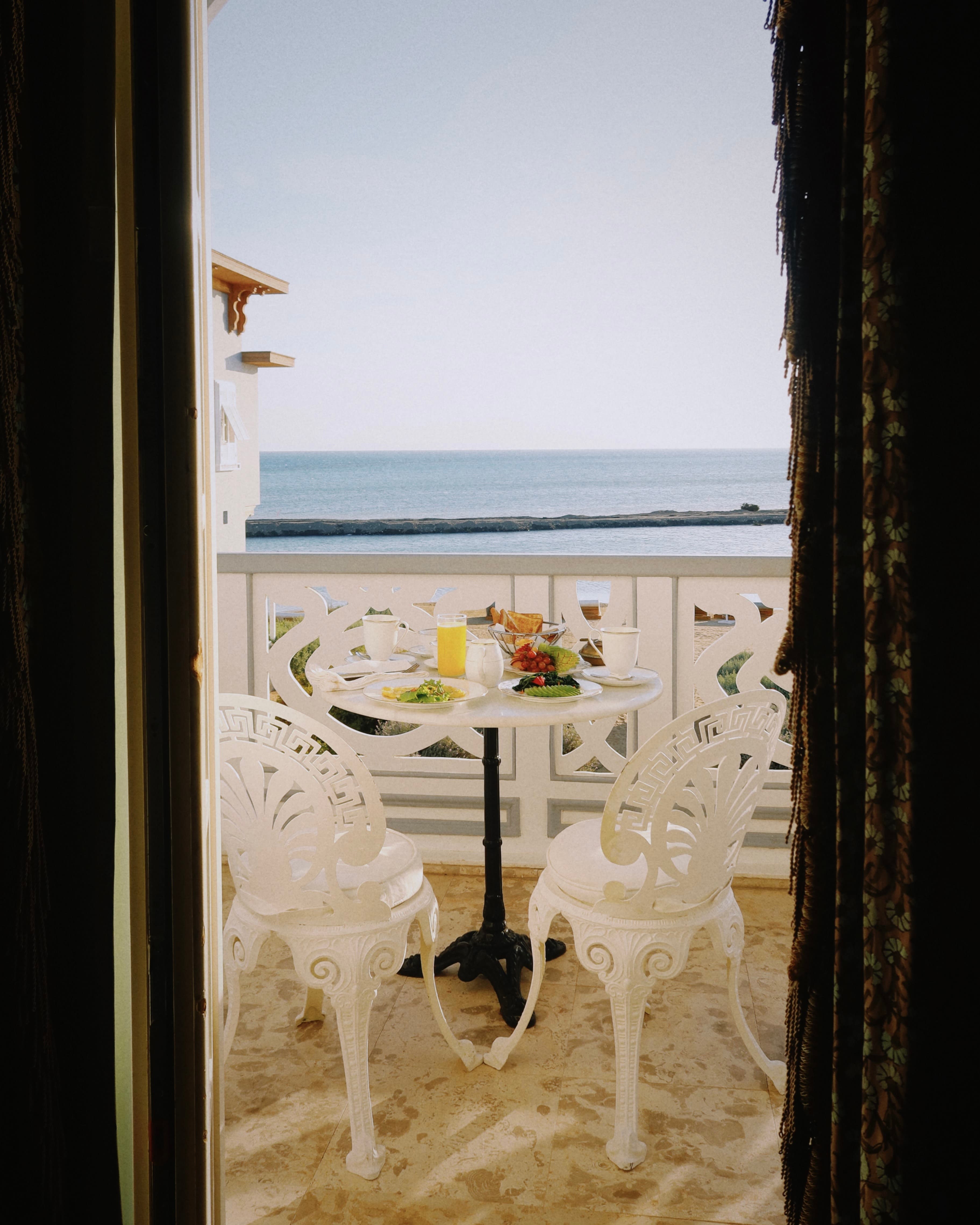 Outside, you’ll find bright pink and white bougainvillea creeping up the facade, a heated and marble-lined pool and a cocktail bar so that you can enjoy your poolside lunch with a cocktail in hand. Off to the side, you’ll find the spa, which is equipped with a Turkish bath, steam room, sauna and plunge pool — all of which are complimentary with your stay. You can also book a massage or spa treatment in one of their two treatment rooms. If you’re more of the adventurous type, El Gouna is known for their water sports. On a breezy day, you’ll see plenty of kite-surfers from your balcony!