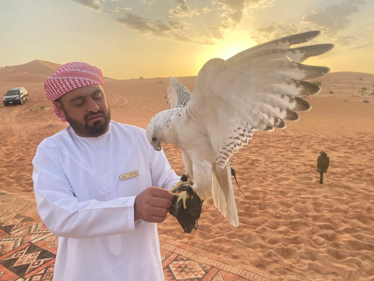 At Qasr Al Sarab, I had the privilege of participating in a falconry experience that was nothing short of extraordinary. The falconry experts shared their deep passion and knowledge, providing me with an immersive understanding of this ancient art form. As I held a falcon on my arm, feeling its power and grace, I couldn't help but marvel at the centuries-old bond between these magnificent creatures and their human counterparts. Watching the falcon take flight, soaring through the vast desert landscape, was a surreal experience that left me with a deep sense of connection to Emirati culture and its rich heritage.