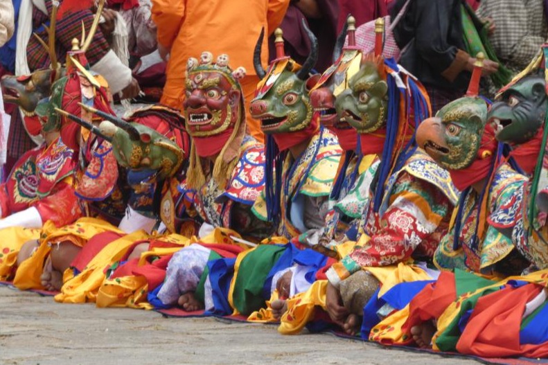 Masked dancers at Paro Tshechu