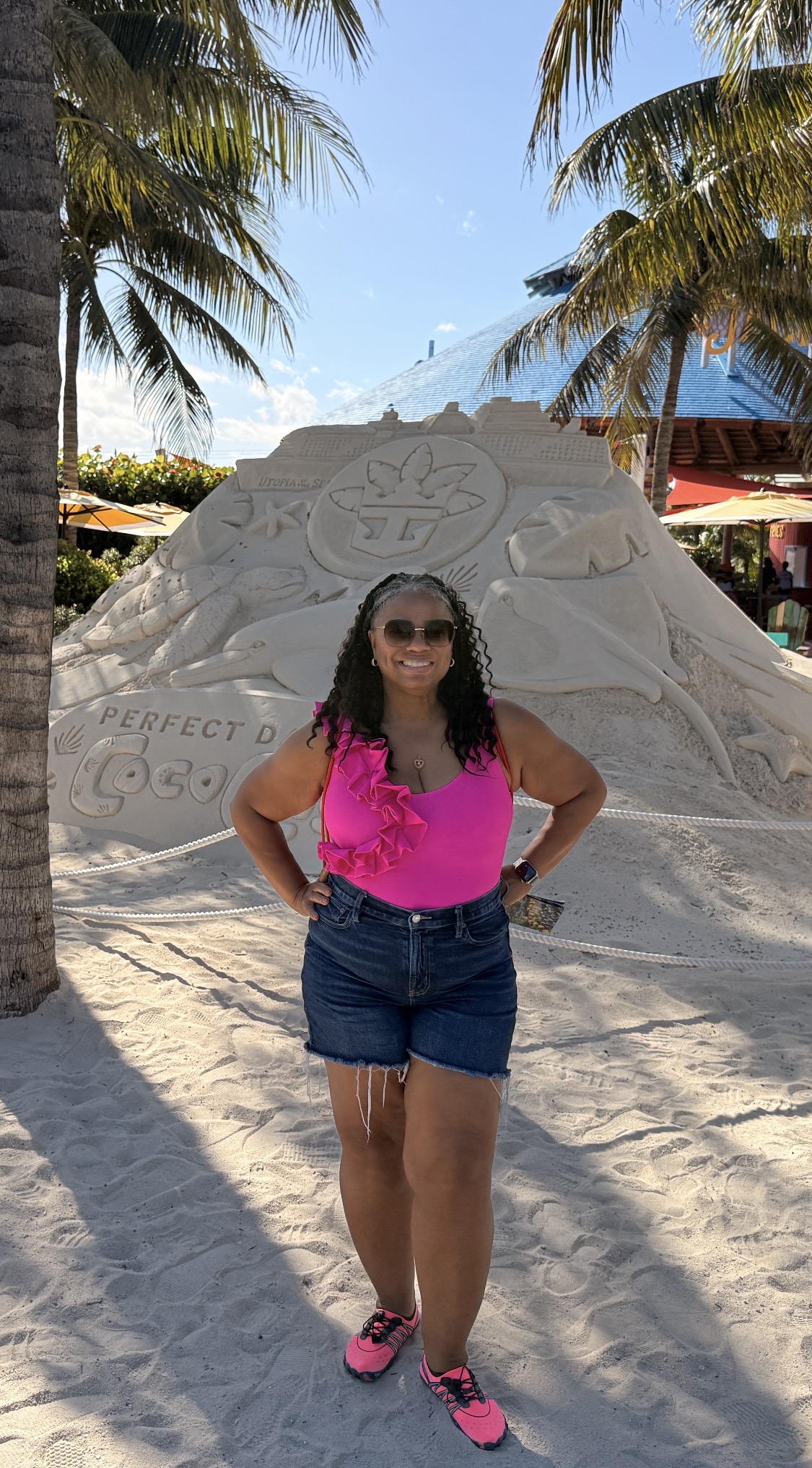The Perfect Day at CocoCay sand sculpture makes the perfect welcome photo as you arrive on the island.