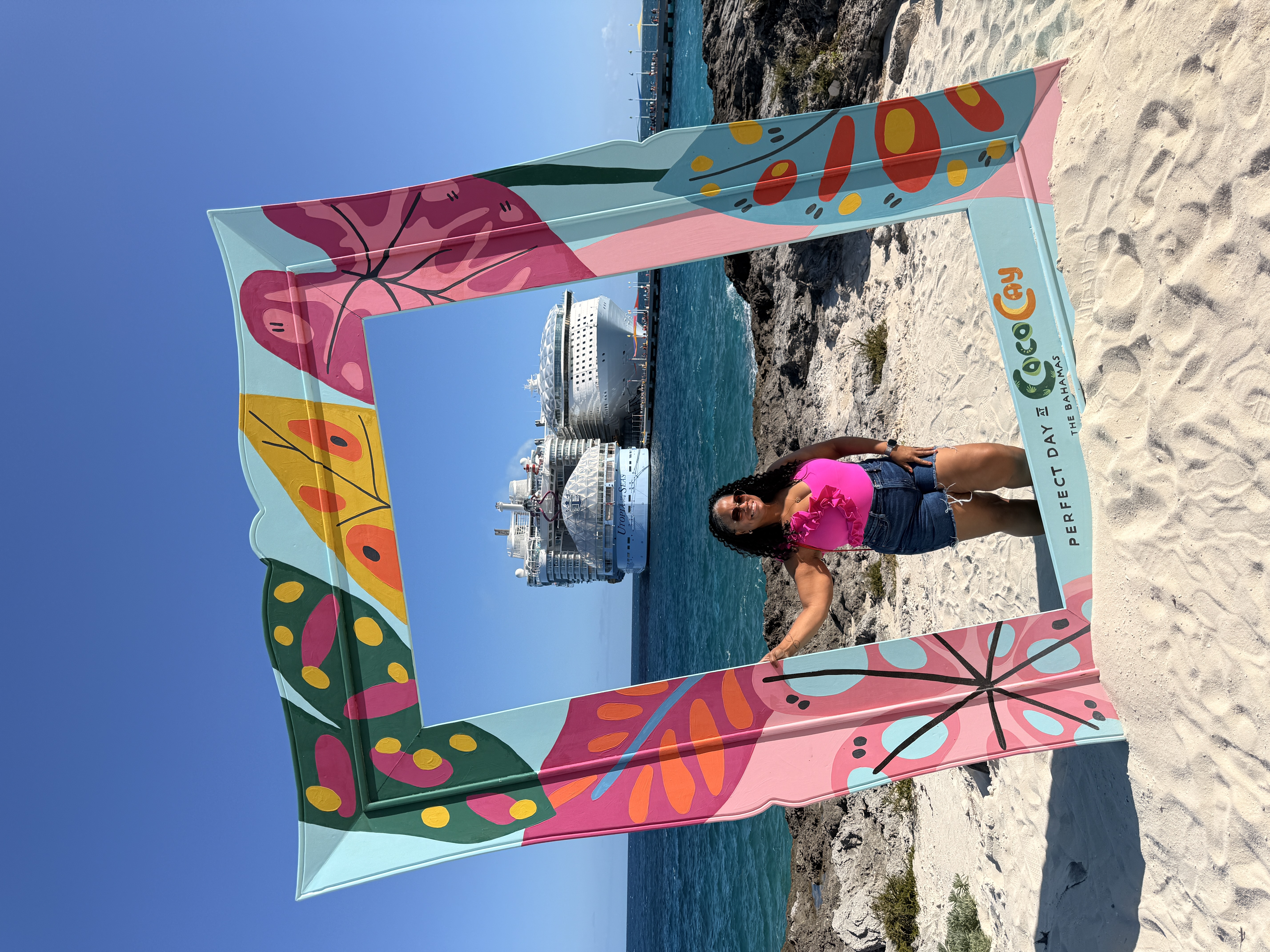 One of my favorite photo spots at Perfect Day at CocoCay, the oversized frame captures the ships perfectly in the background.