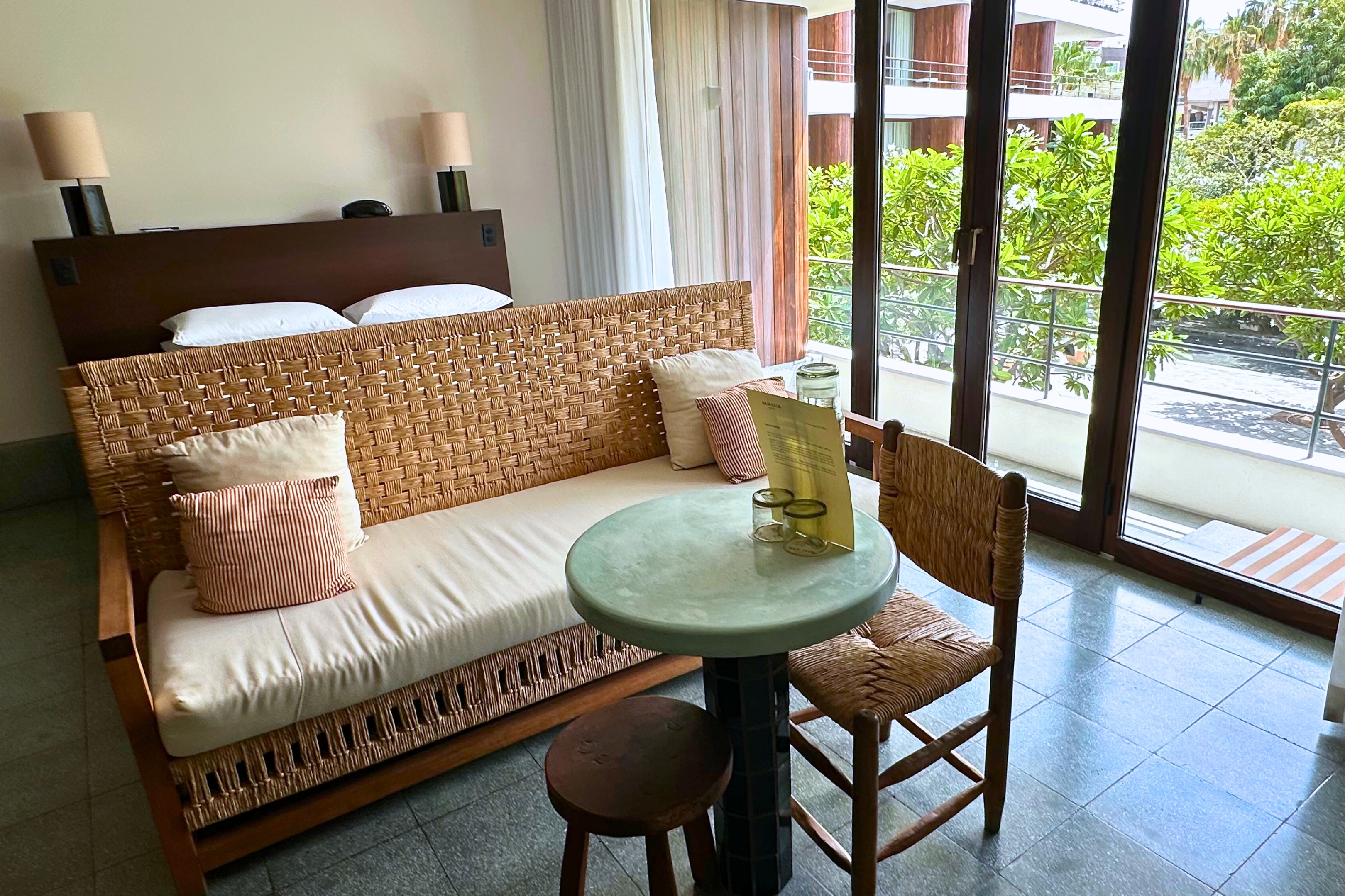 I stayed in a Balcony Room, which combines indoor-outdoor living with views of the central patio. I also toured a Garden Room, which is more tucked away and private, and both a Junior Suite and a Terrace Suite, which offer a bit more space and design accents for those wanting to spread out. With only three suites in total and three rooms with double beds, inventory is limited—but that also means each stay feels curated.