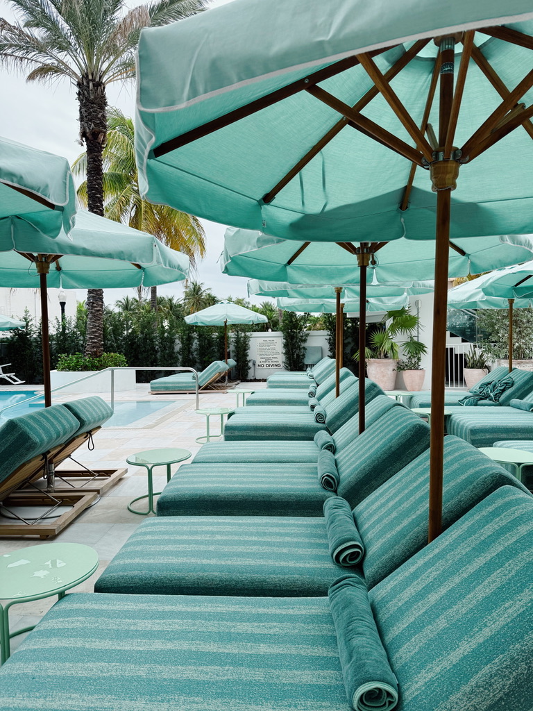 Miami, the town that has it all—sunshine, high fashion, wellness, and a world-famous nightlife. We stayed at the newly renovated Shelborne by Proper in South Beach, whose Kelly Wearstler redesign transports you to a modern art-deco oasis that delights all of your senses (I would have bottled the lobby scent if I could have). The soft peach hues, greens from the plants, and rounded corners on the carefully selected furniture created a perfect ambiance that transitioned seamlessly from day to night. The pool and beach loungers were plush and plentiful for hours of enjoying the Miami sun.