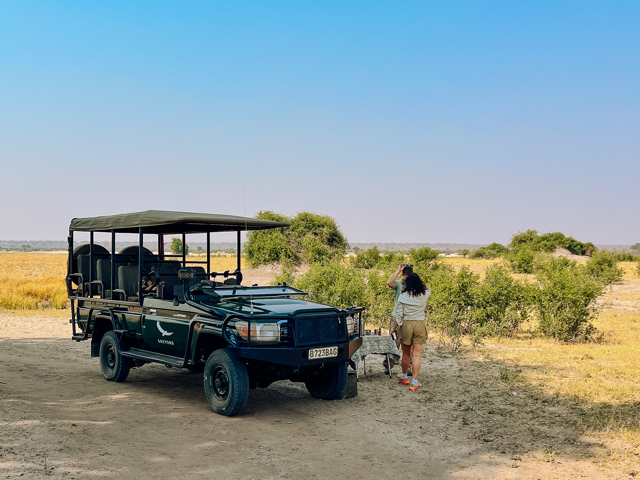 One thing to note: Chobe Under Canvas doesn't use the traditional guide-and-tracker setup you'll find at some other camps. Because it's a national park, no one is allowed to step out of the vehicle except in designated spots—so having a tracker up front would mean breaking the rules. Tony handled driving, tracking, and spotting solo, and he was brilliant at it. He was attentive to our interests and made time for the smaller sightings, not just the big game.