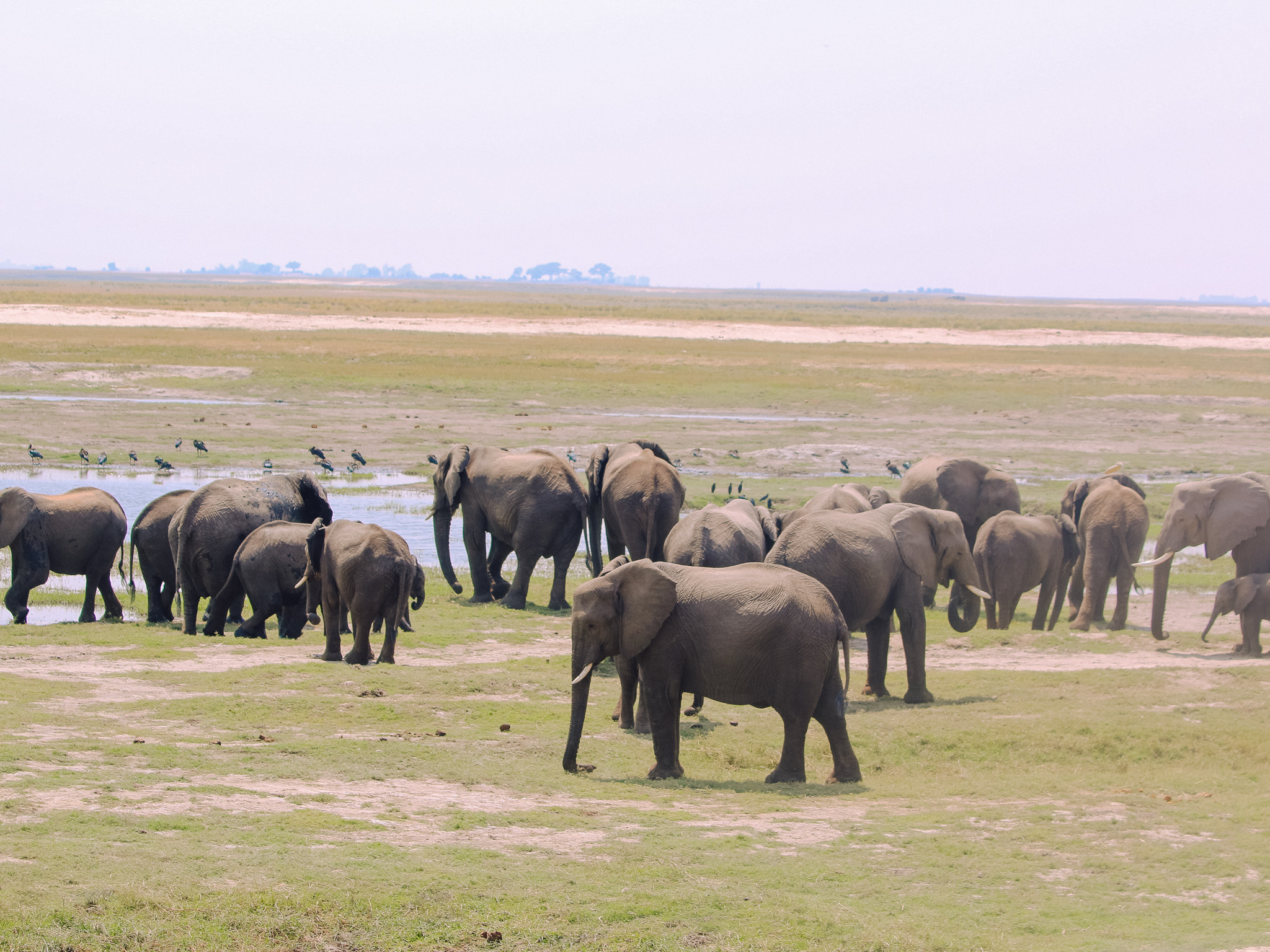 We visited at the end of the dry season in September, which is peak time for wildlife concentrations in Chobe. The park has one of the highest elephant densities in Africa at this time of year, and it showed—we regularly spotted herds of over 20 elephants at once. Giraffes gathered in large groups, too, which was incredible to witness.
