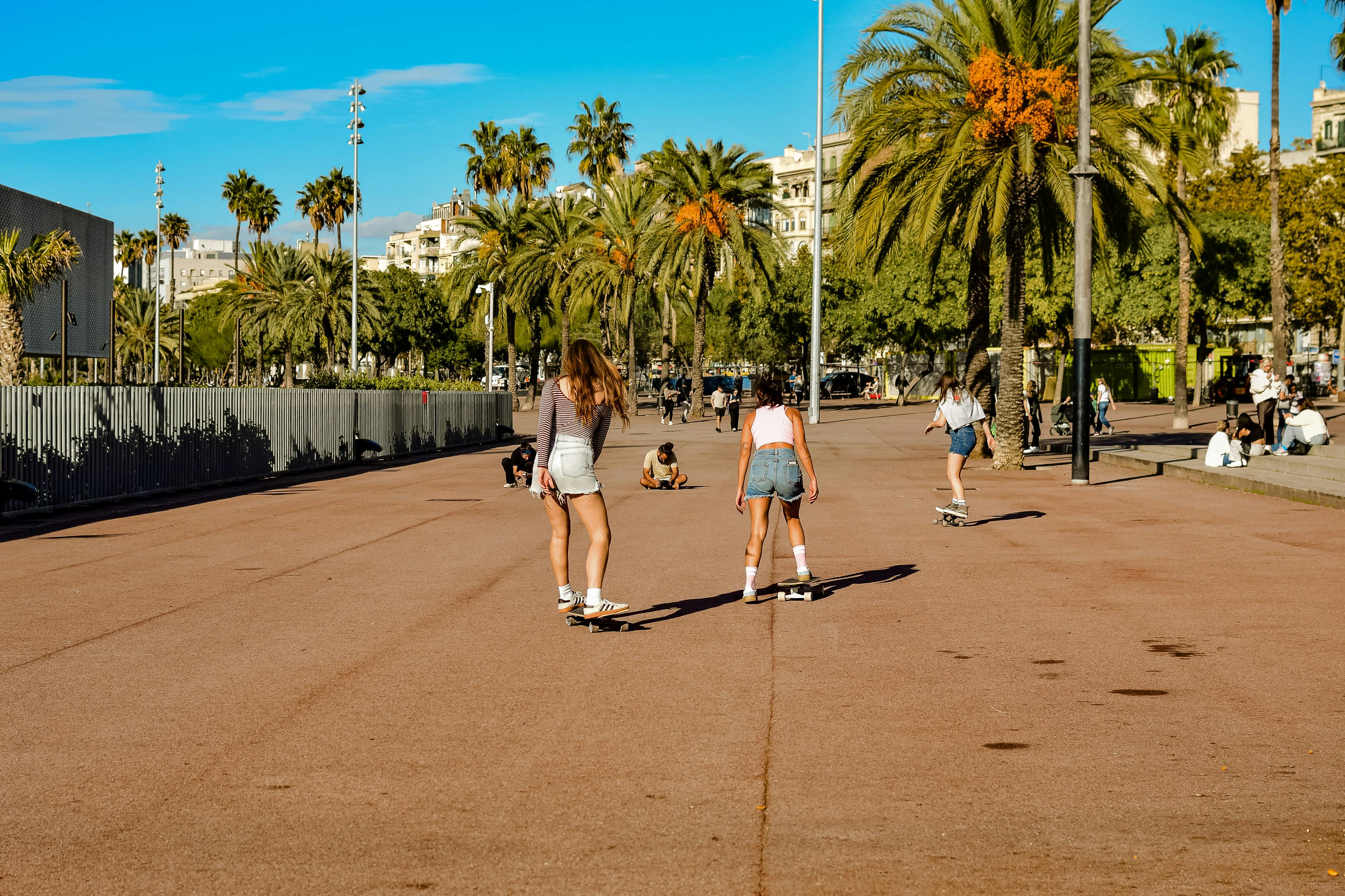 Young women skating in Barcelona, Spain