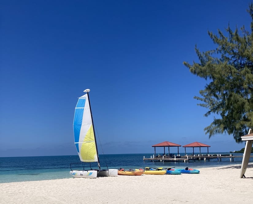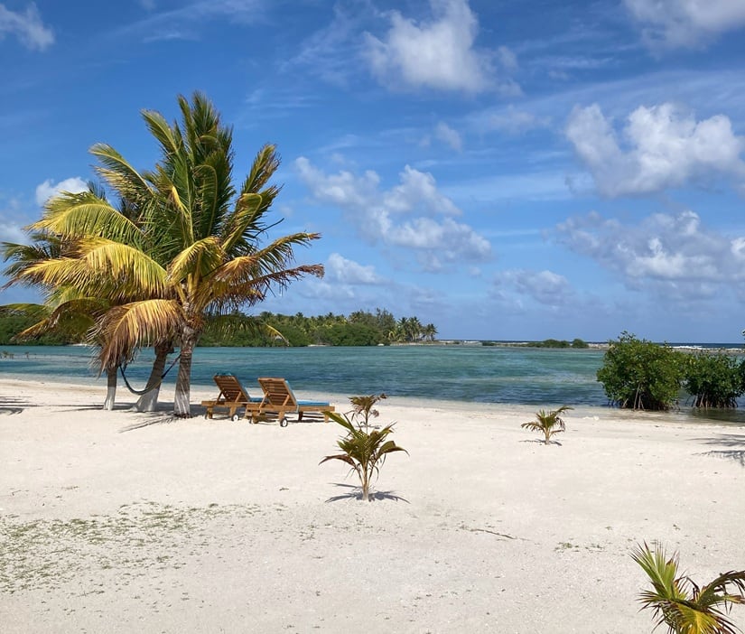 Relaxing around the gentle waves, looking out at the various shades of blue and turquoise, how can you not help but jump in the crystal-clear waters? Manta offers snorkeling equipment, paddleboards, kayaks, and even a Hobie Cat catamaran sailboat for use—and it’s all included in your stay. Their staff will give you helpful information on where to snorkel and see the most fish, where to avoid swimming, and where to go see the nurse sharks lazily swimming around where the fishermen clean their catch. You may even catch a glimpse of an eagle ray gliding by you! When it’s time to go on an island-hopping tour or a snorkeling adventure, you’ll be fitted with your snorkeling gear before venturing off with the boat captain and deckhand/guides. They have years of experience around these waters and are passionate about what they do. They can tell you the names of every fish you will see, the different types of coral, and what to do once you’re in the water to be safe and enjoy the experience. The water is so clear, you’ll feel like you’re in an aquarium. Glover’s Reef is a protected atoll, with strict licensing and fishing permits required, and respect for the environment and sustainability is enforced to protect this fragile ecosystem.