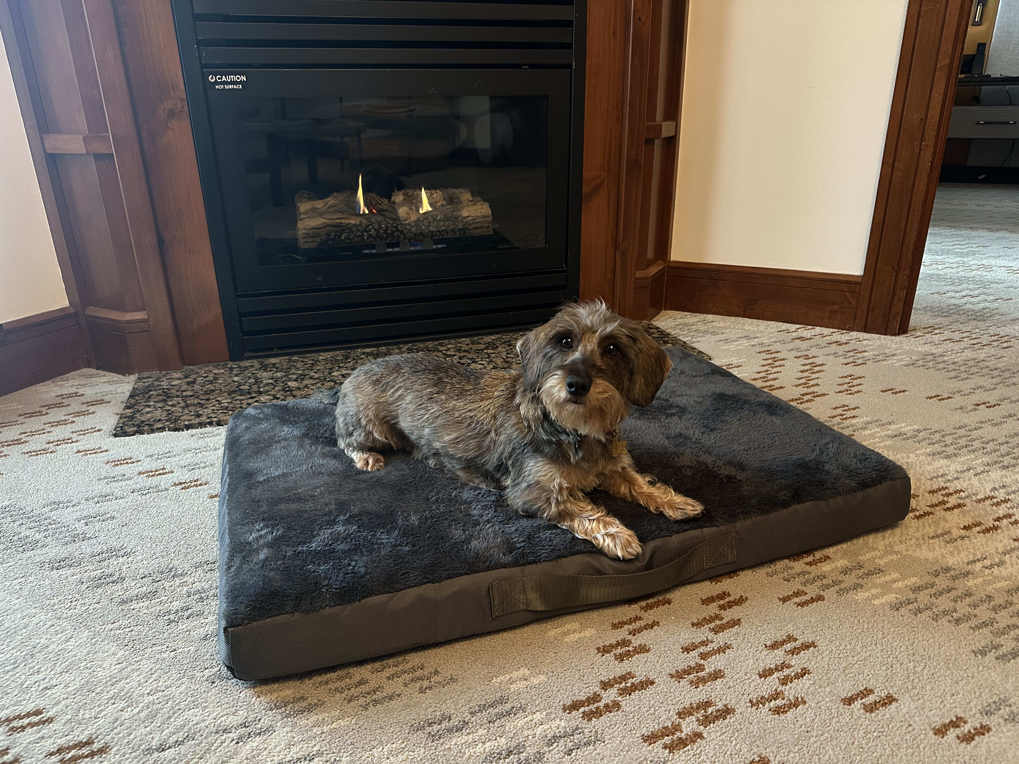Our dachshund, Leia, loved relaxing by the fireplace on the provided dog bed