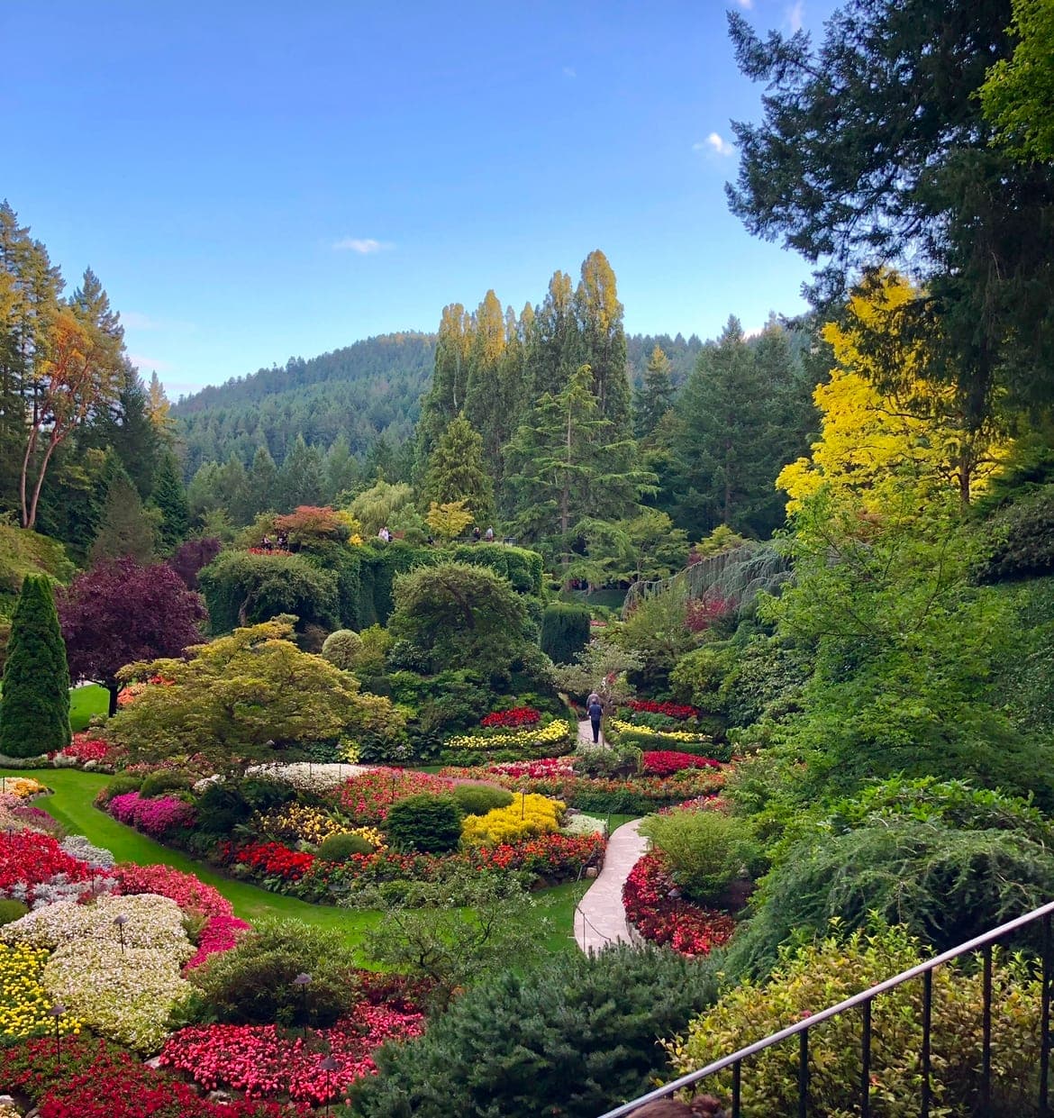 Our last port was Victoria, and we were very excited for a day at Butchart Gardens. After a lovely bus ride to the gardens, we were told that we could rent a wheelchair for the day on the premises. It’s a very large garden and we thought that would be the prudent thing to do. We quickly got a wheelchair and headed in. I’m not one to be intimidated by crowds, but it was busy. If we didn’t have the wheelchair, I think it would have been much easier to navigate through the gardens, but we did. I was very dismayed at the lack of people letting us through the paths. The wheelchair was wide and it was hard to dodge and get around the large crowds of people. And it’s really hilly. It might not seem as hilly when you aren't pushing a wheelchair, but to me it felt like we were visiting Mount Everest. I was not strong enough to push the wheelchair well, and it became frustrating. If my husband had been with us, I feel confident that he would have not had the problems that I did. So I’m not saying don’t go if you're using a wheelchair, just make sure you have a strong person along. Unfortunately, I believe it would have been too difficult for my mom to use her walker there, so a wheelchair is the best option. With that being said, the gardens are magnificent. You wouldn't even know there was a crowd when looking at my pictures. It gets a ten for beauty. I have never been to a more beautiful garden. We really did enjoy the excursion — it was just more of a workout than I was expecting. It was dark on the way back to the ship, and the city was stunning. We had a tour by bus and the city is lively at night and the lights are spectacular.