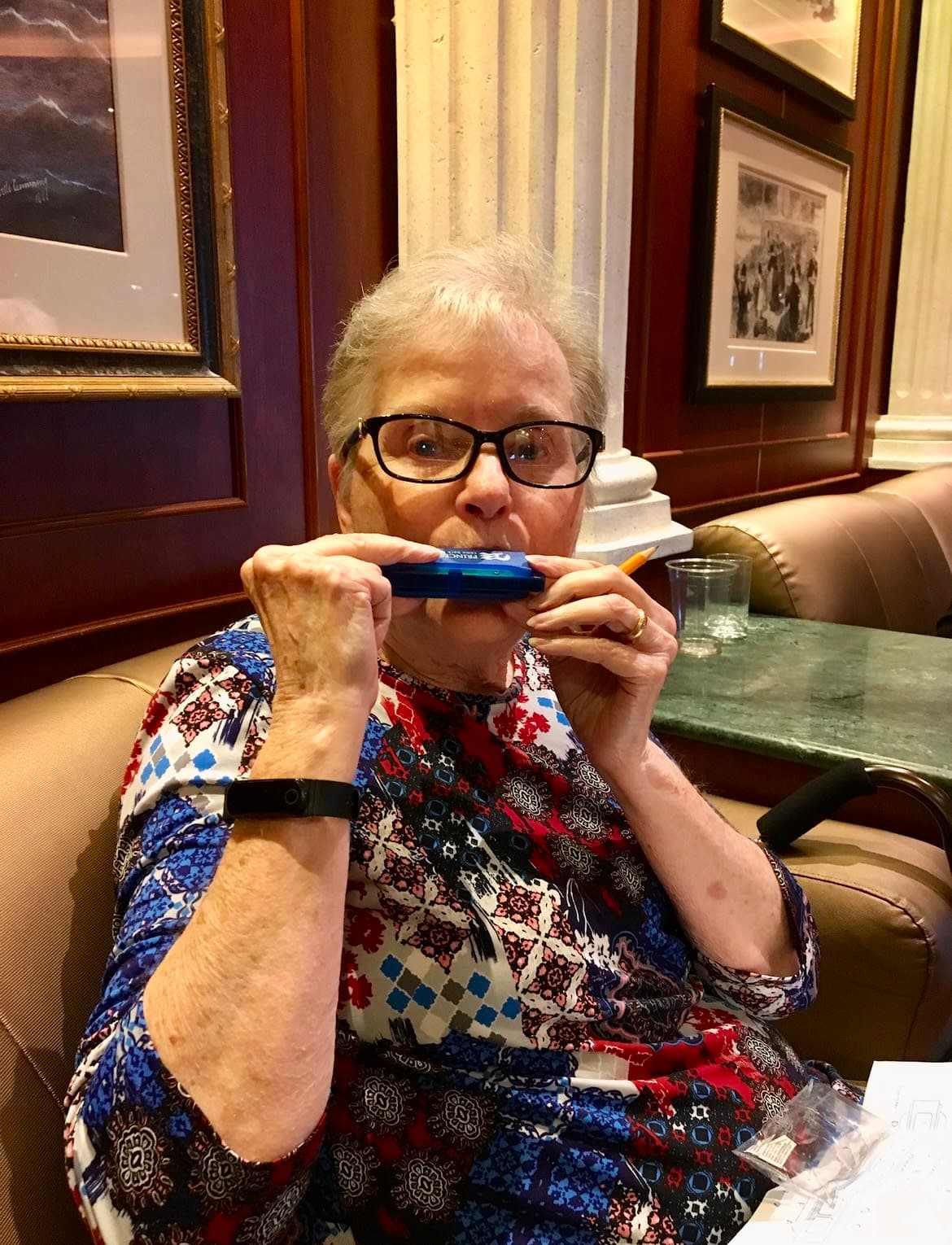 Everything we did on board was easy for her to attend. We went to the casino to play some slots, played bingo, watched ice sculpture carving, attended a lecture by an actual Iditarod musher, listened to live music, went to shows, played trivia games, we took a class on how to play a harmonica and we got a special treat called “Puppies in the Piazza” –where they brought in future sledding puppies for us to interact with. There were a few things that were too crowded for my mom to attend — like the champagne party and the night clubs were not for her. But that’s the beauty of a cruise, she still had something more in her style to do at any given time.
