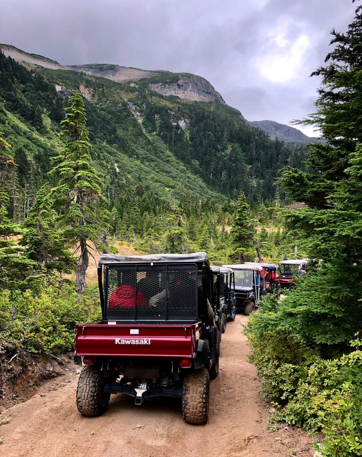 The following day, we stopped at Skagway. My mom stayed on the ship again with a good book that she found at the ship's library, and I boarded a ferry for a scenic ride to Haines. After a very beautiful bus ride, we arrived at the Takshank Moutain Trail to drive ATV’s up the mountain. The mountain views with dazzling blue lakes below were surreal, the waterfalls were plentiful, we saw lots of wildlife, ate wild blueberries and had a homemade Alaskan feast at a lodge. It was a bucket list day, for sure. It would have been too much for my mom, but as I boarded the ship, I quickly saw my mom, who was playing with adorable sledding puppies. Bucket list items again!