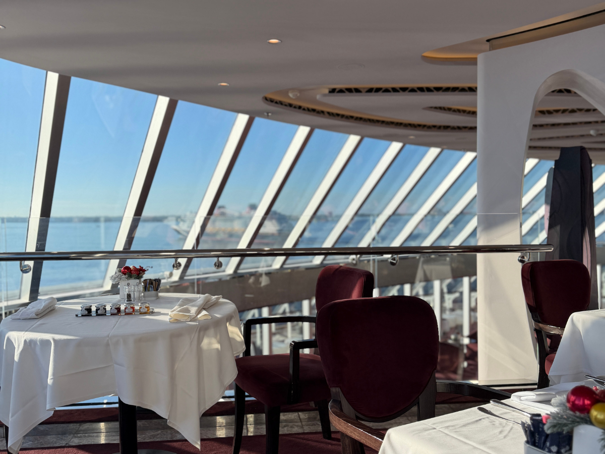 Ocean views from the Yacht Club dining room—elevated cuisine with an ever-changing backdrop.
