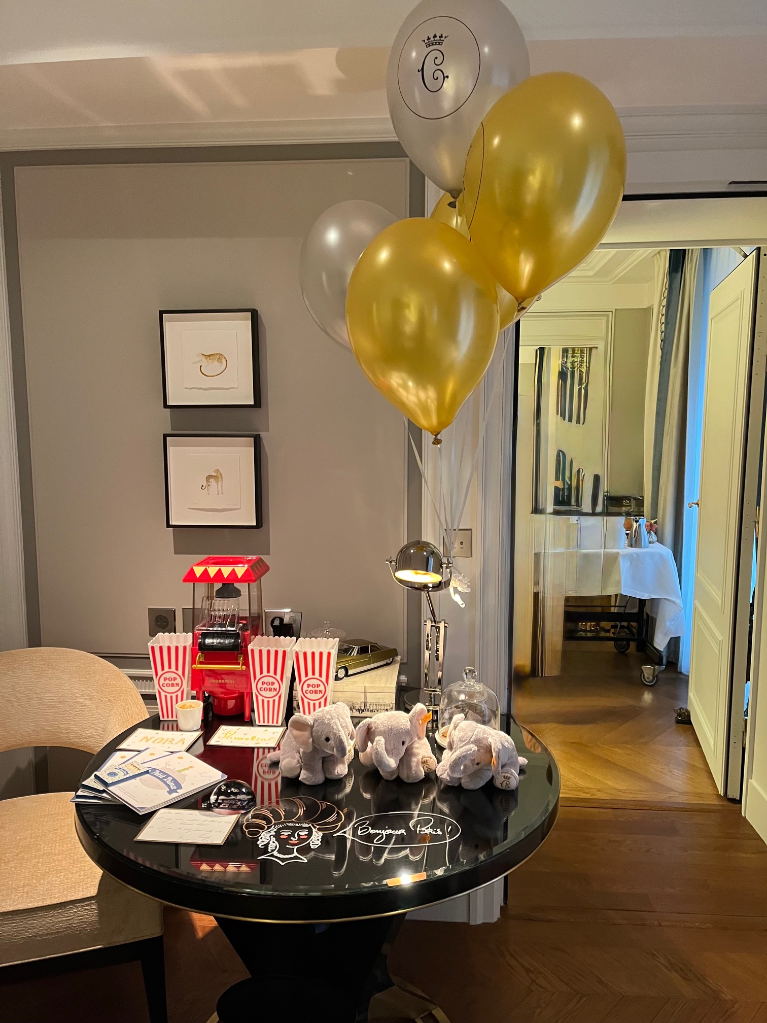 We stayed at Hotel de Crillon, right in the heart of the city. The hotel team went above and beyond for the children—personalized welcome notes and individual treats for each of the four little girls awaited them after a long flight. The team used markers that could write on furniture, so what a surprise when we came back one evening and Madeline and Minnie were illustrated on the shower door! They would even set the stuffed animals up on the bed, engaged in a ‘read aloud’ during their turn-down service each night. Truly magical!