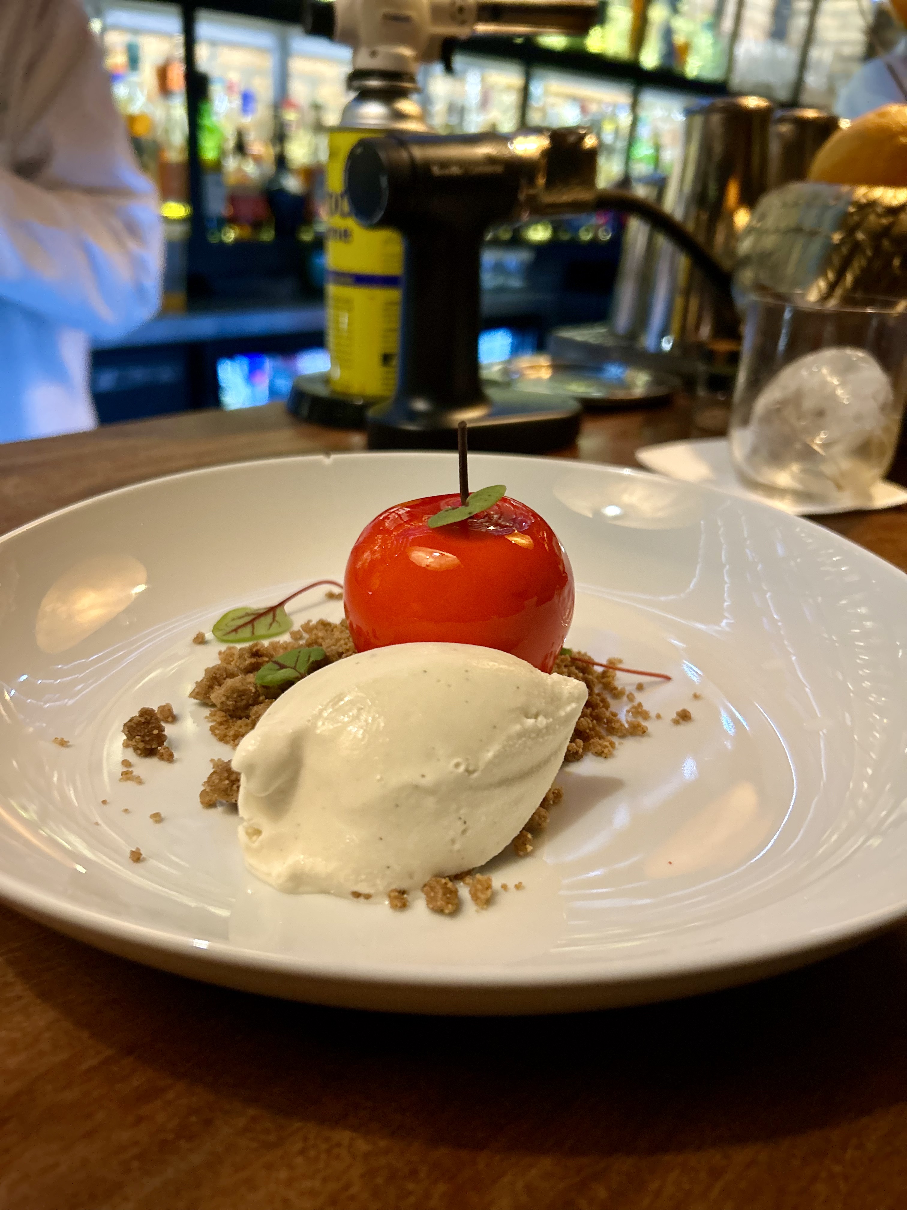 Modern take on apple pie dessert at Azahar