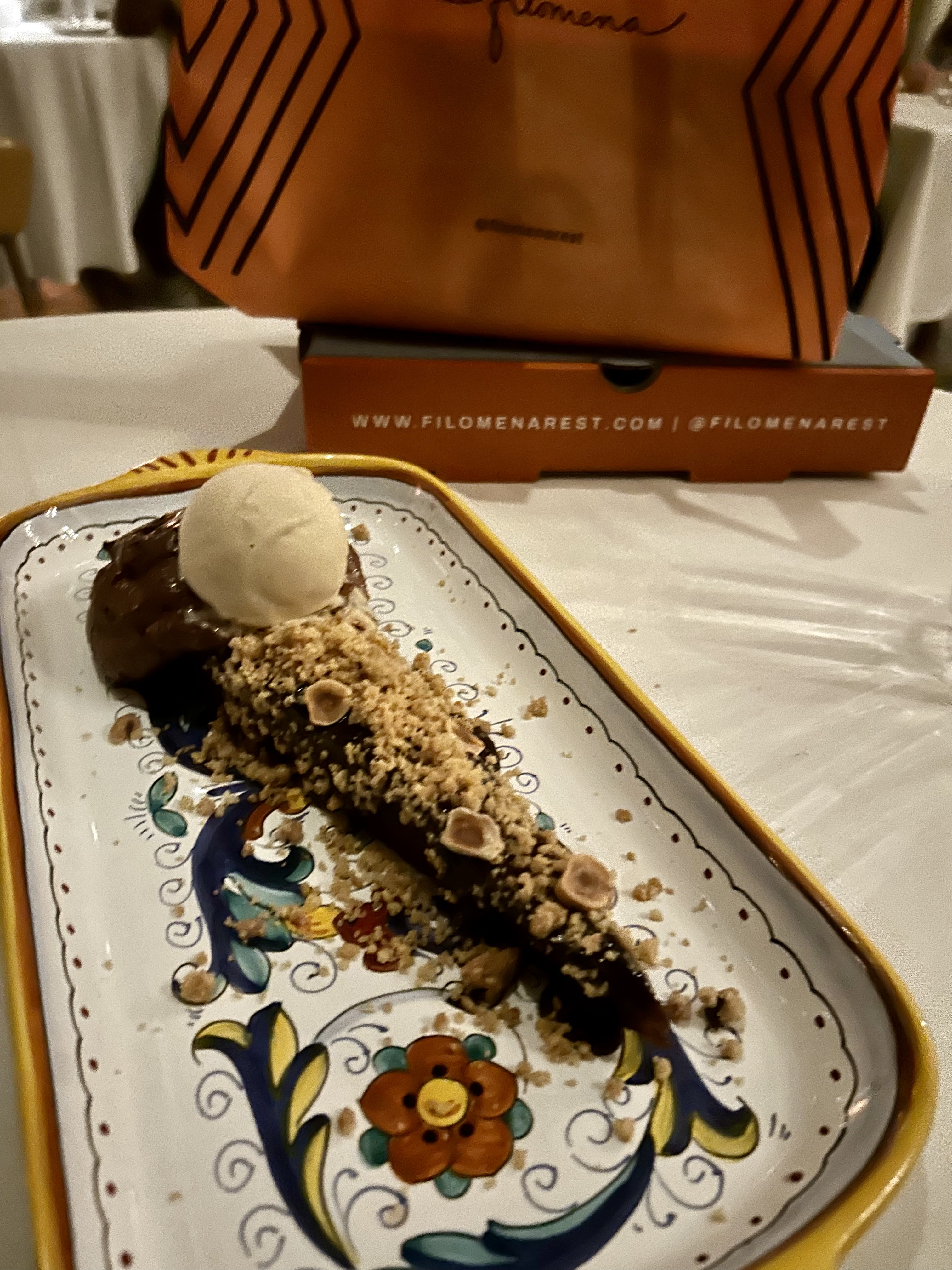 Wrap up your meal at Filomena with a slice of Piemontese Chocolate Cake