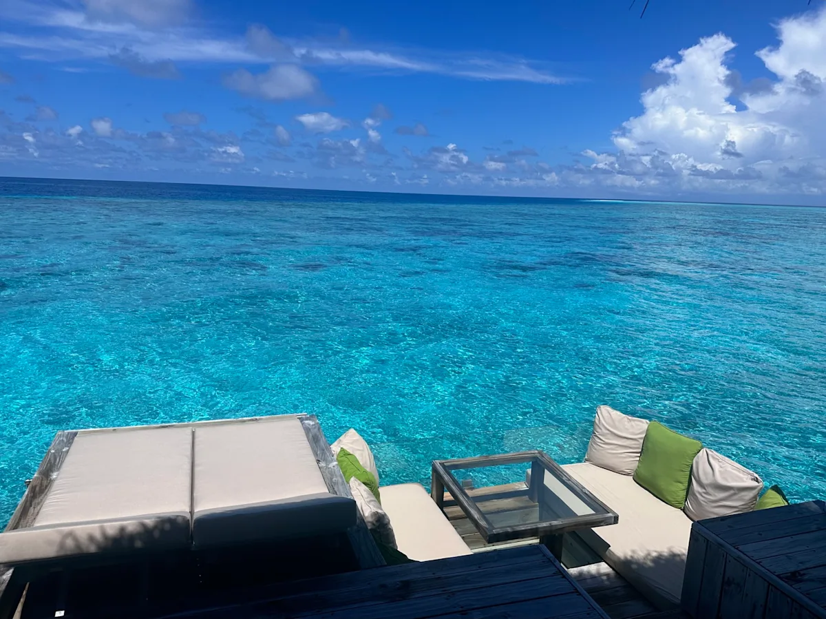 The expansive lagoon and its ever changing hues of turquoise and every shade of blue is stunning. It's the most beautiful lagoon of the 16 resorts we have stayed at (Vakkaru is second).