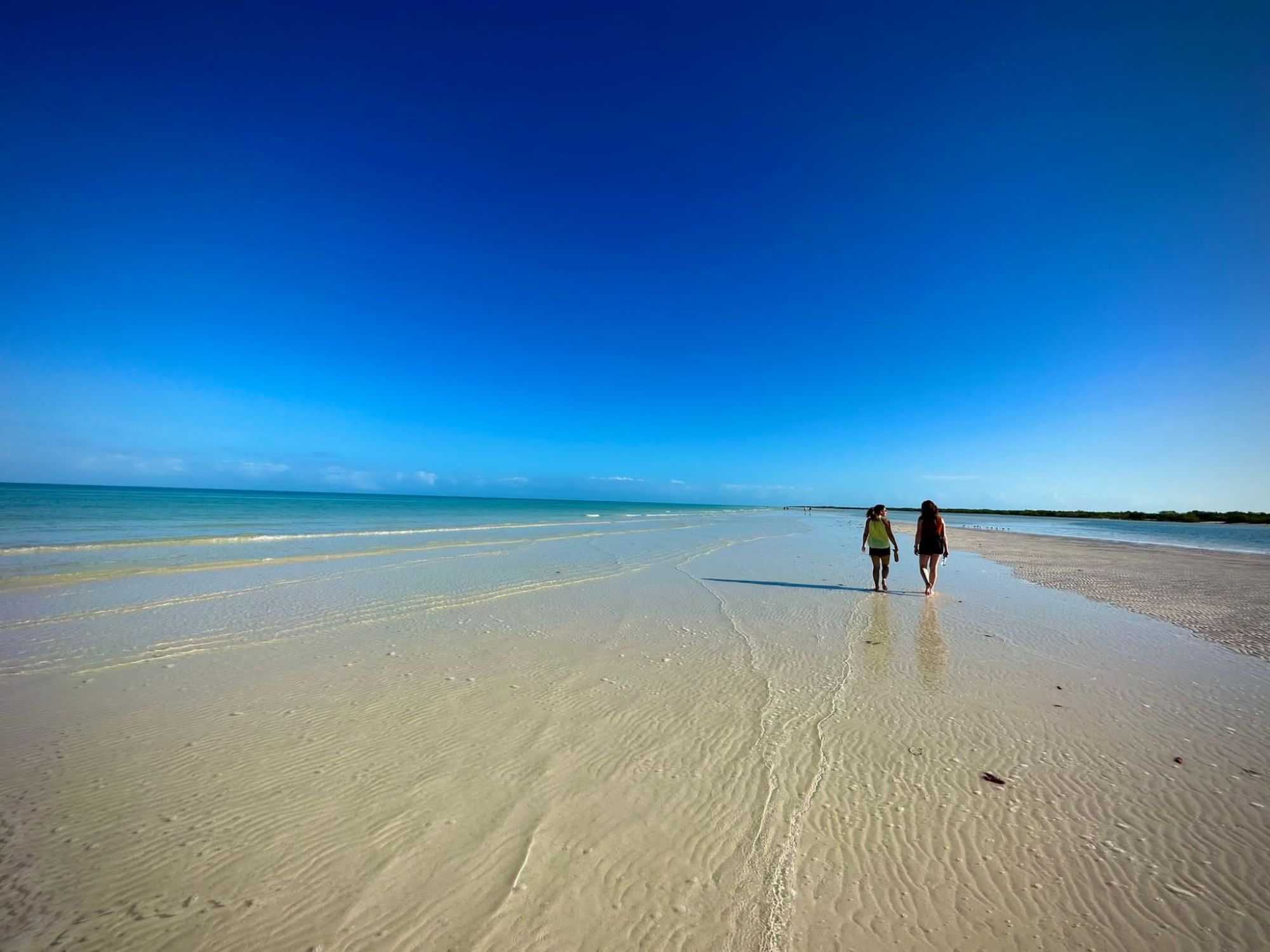 Venture out to the pristine sandbar stretching along Holbox's idyllic shoreline, known as Punta Mosquito. The shallow turquoise waters invite leisurely strolls, especially during ebb tide when the water recedes, revealing a lovely pathway. Keep an eye out for flamingos!