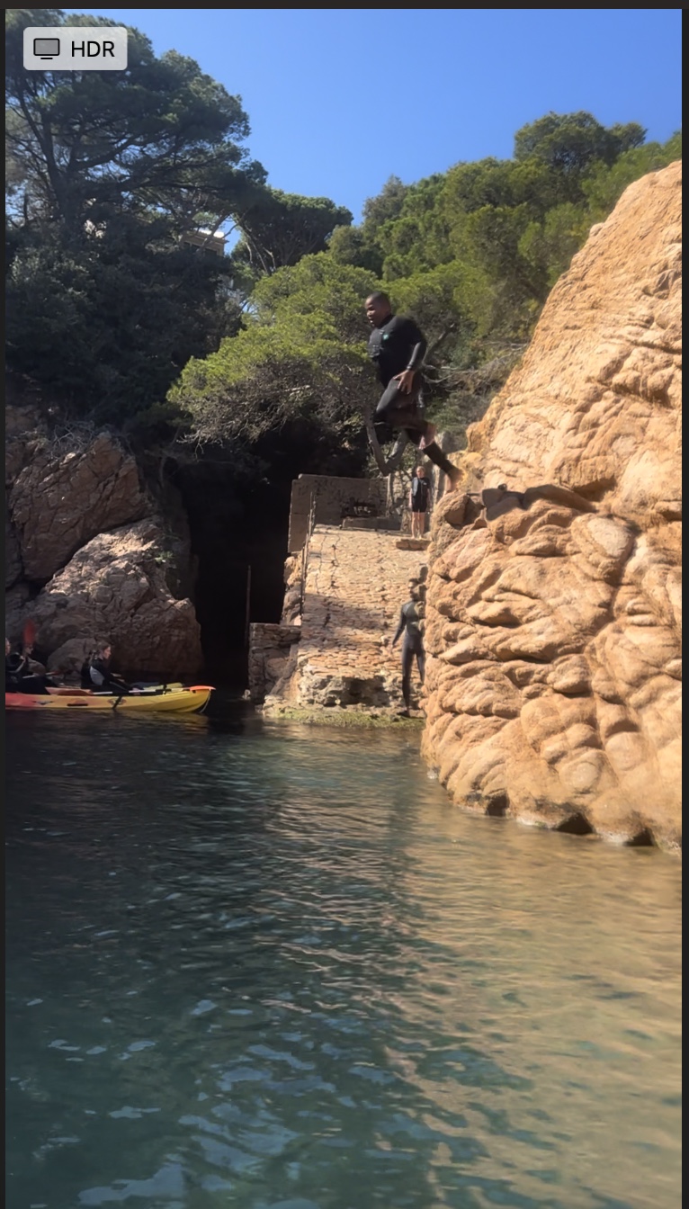 Travis leaping into the Mediterranean on our Costa Brava day trip.