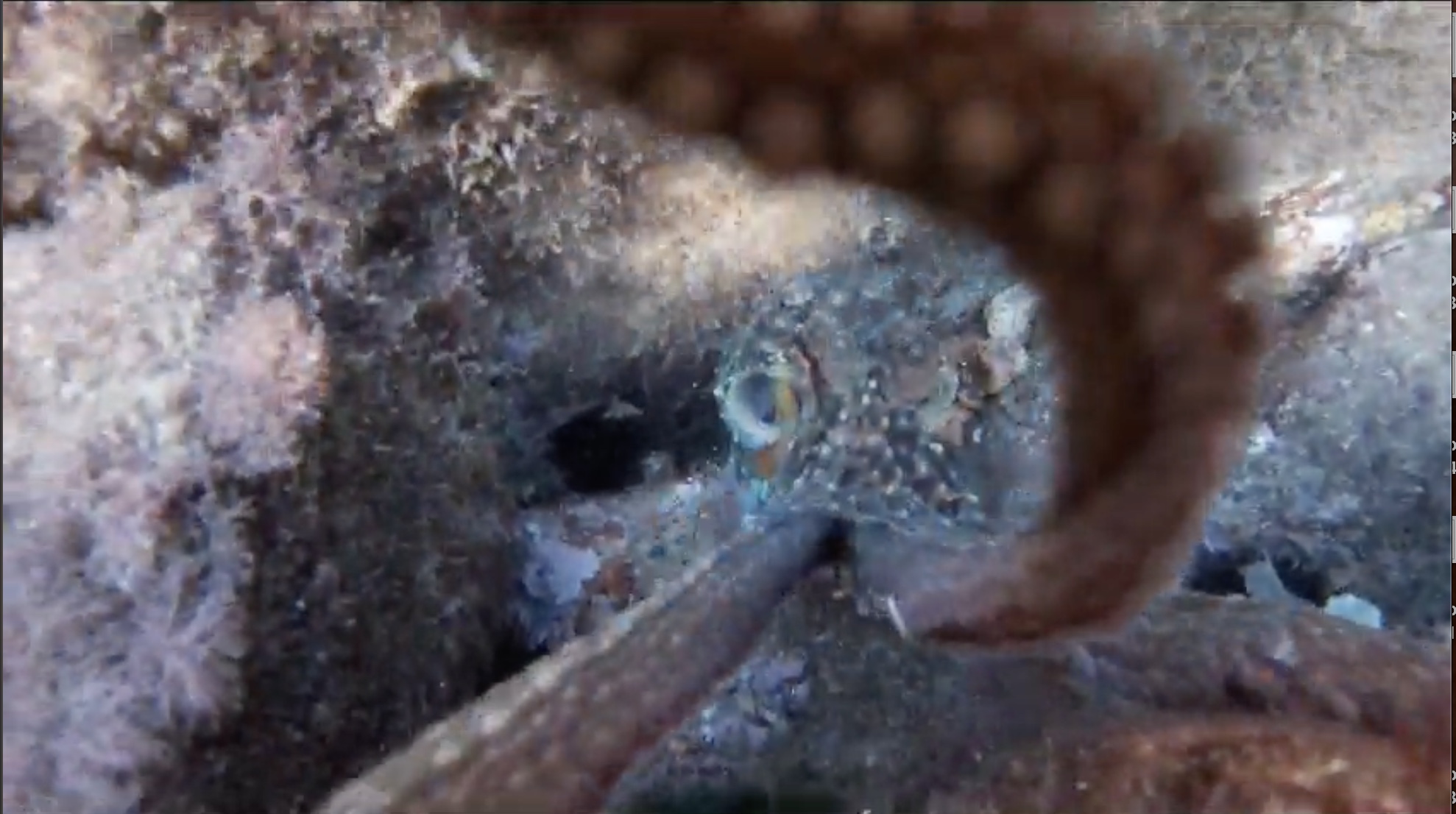 A once-in-a-lifetime moment: an octopus reaching out to Travis’ GoPro during our snorkel.