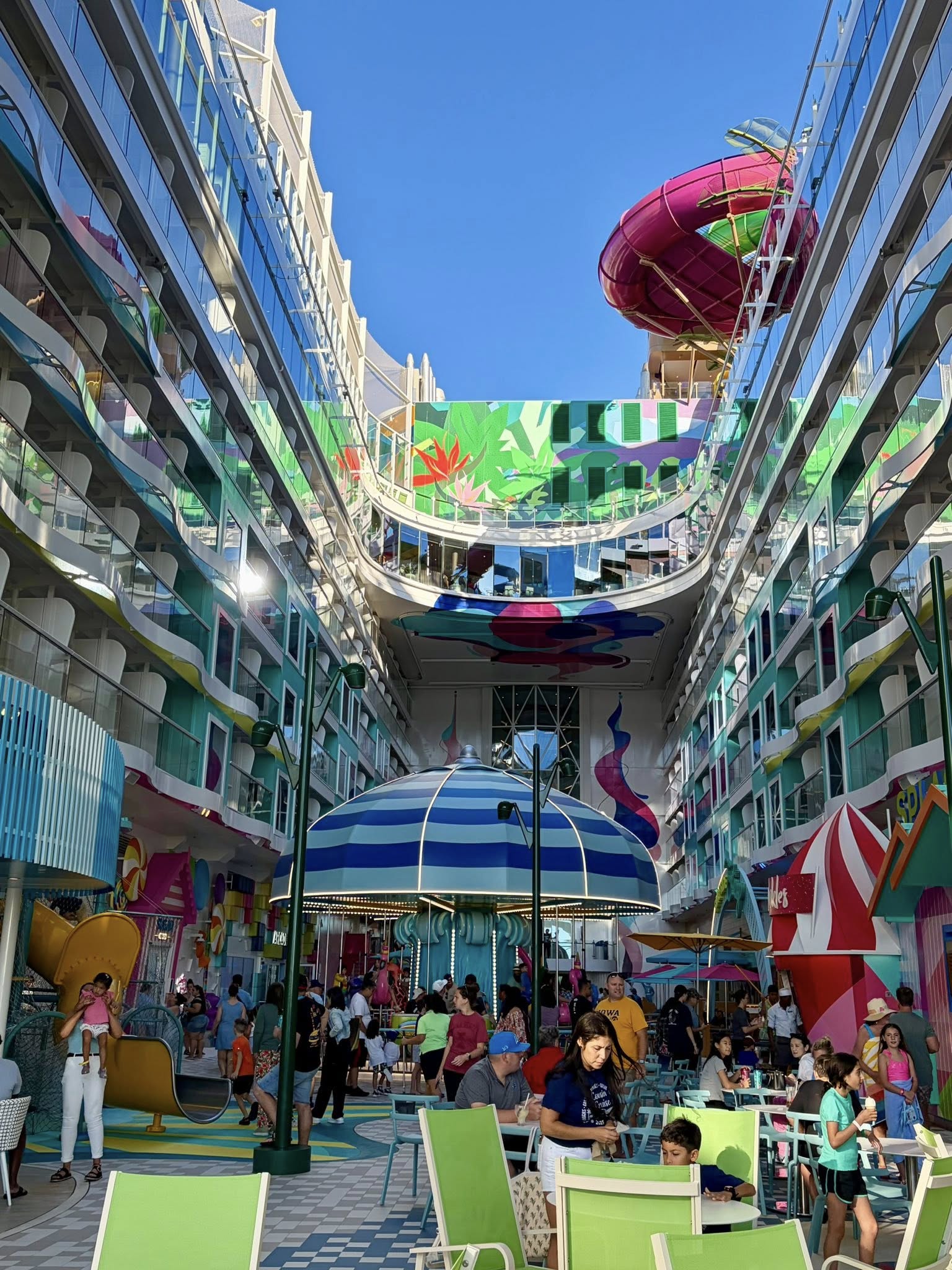 Although the ship is huge, we sailed in mid-November and never really felt crowded. I didn’t mention everything because it would have been a book. We were able to find chairs around the pool decks when we needed them. We usually showed up early to the shows we wanted to see to ensure we had seats. We ate in the Main Dining every night, which was the typical Royal Caribbean if you have sailed with them before. No specialty dining for us! We prefer the smaller ships when we are sailing alone, but for the family it was a great choice and we would definitely sail again... in shoulder season!