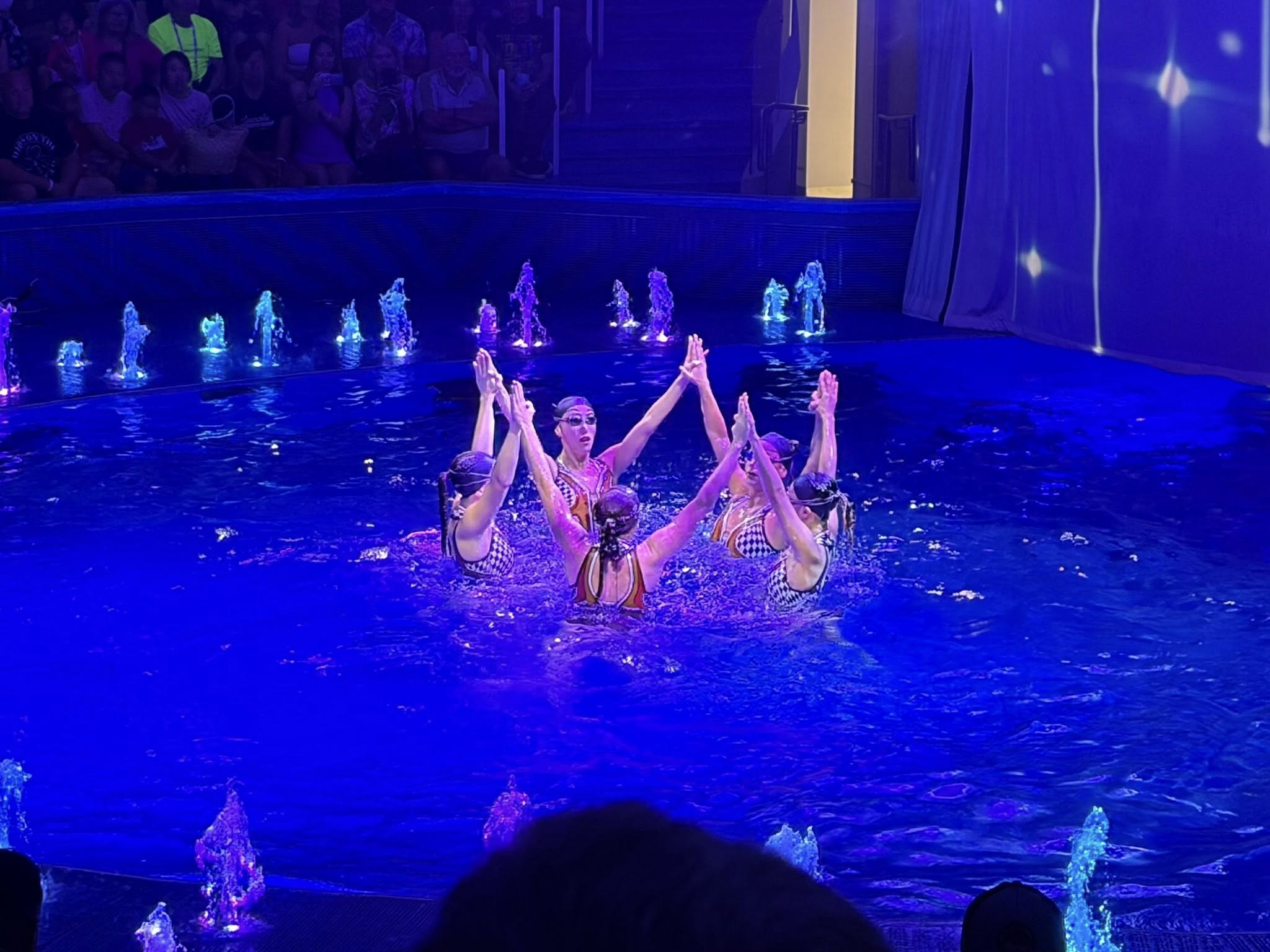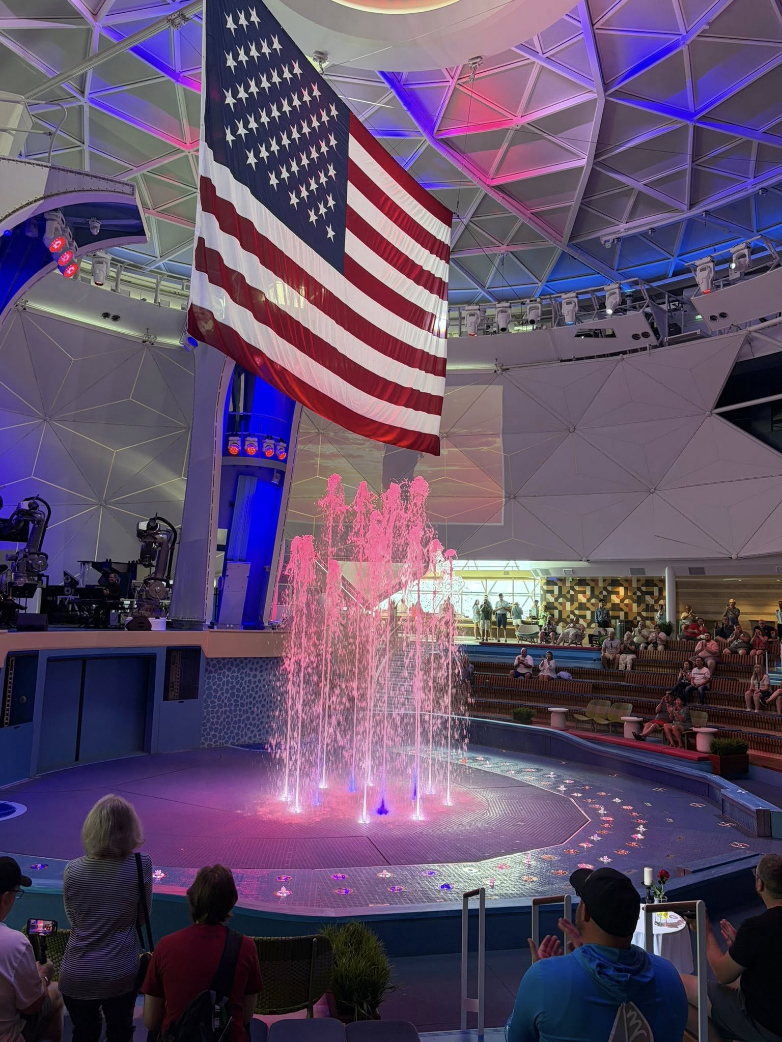 The shows fill up fast, and it is best to get reservations at Spotlight Karaoke after you drop your luggage off in your rooms. In order to honor your reservation, you have to be present at least 15 minutes prior, otherwise they release the reservation and it is first-come, first-served. We were able to get into the comedy club and Back to the Future, which were all booked, by getting there early and waiting for the fifteen-minute window to pass. All the shows we attended were really good, the ice show in Absolute Zero, Torque in the Aqua Theater, the various performers in the clubs, and the shows on the Promenade. The Veteran Tribute that was held in the Aqua Theater was probably the best I have ever seen, also recognizing the veterans from our allies as well as First Responders.