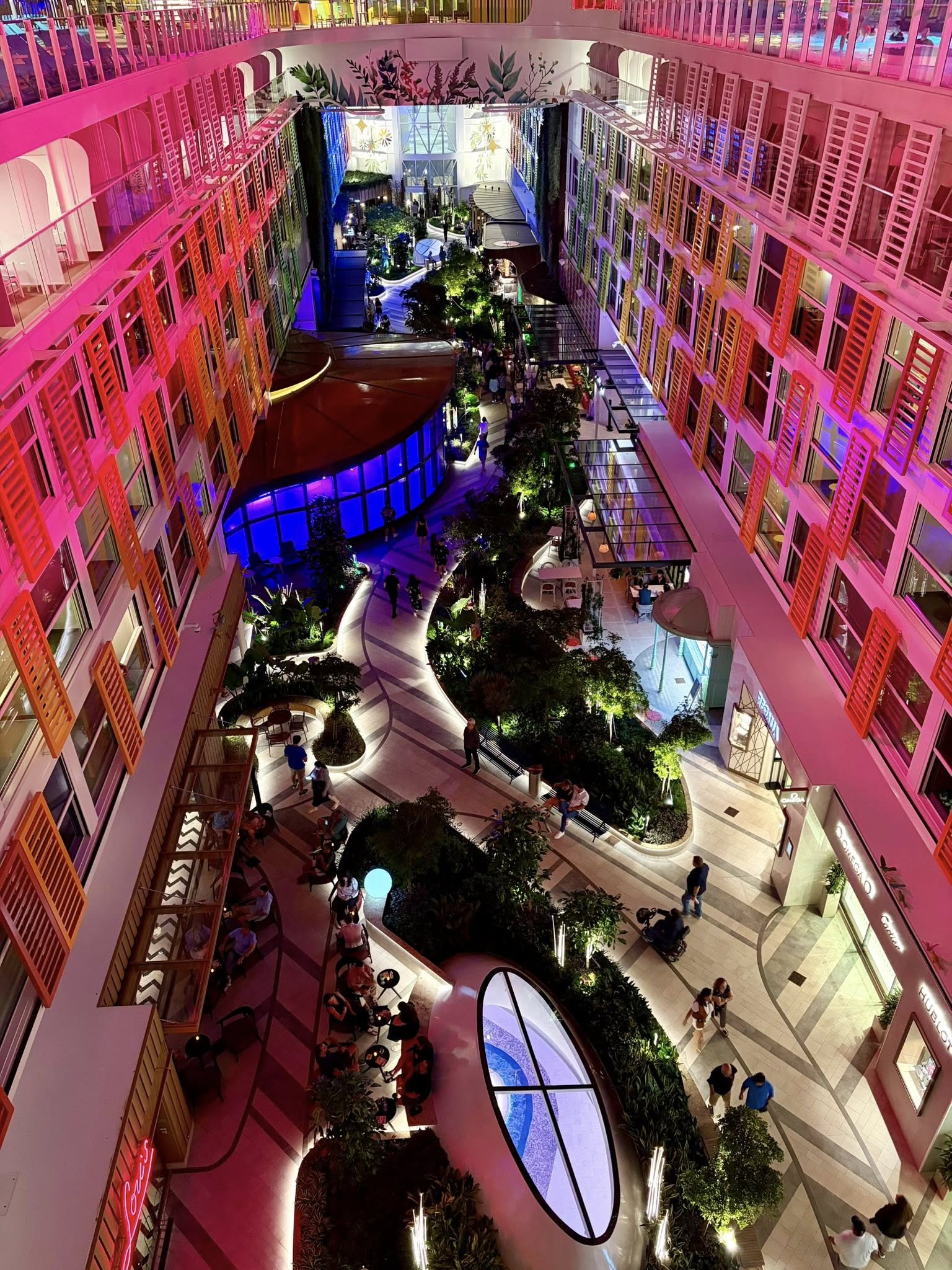 As mentioned earlier, plan your entertainment early and show up early. If you can’t get a reservation, show up early, and at 15 minutes prior you may get in. A lot of people reserve and then change their minds or forget. Star of the Seas is fitted for the Cruise Pass if you don’t need the full internet package. RCCL is going to have a system similar to the Medallion on Princess, but it only works on the newer ships and is a separate purchase. We travel light and self-assist—embarkation and disembarkation was quick and easy. We checked out the interior balcony and the concept is pretty neat, still having outside light available, some with sliding windows, and they have shades, although when the shades are open you could be looking across the way to someone elses cabin!