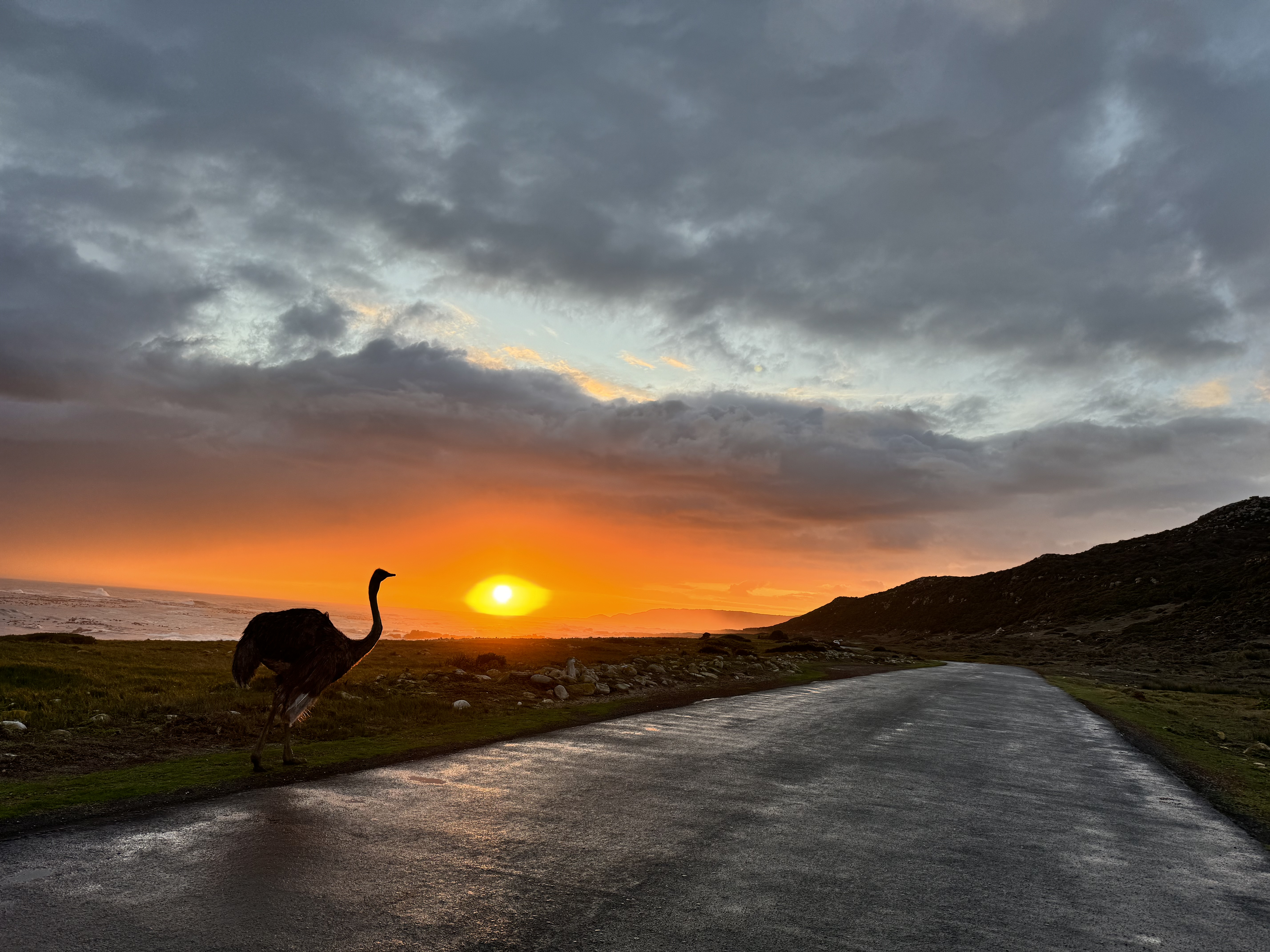We also saw a wildcat while driving, and at one point the road was literally covered with baboons and they instantly started coming up to the car. It was wild. At the end of the day, we watched the sunset on the beach there while an ostrich walked by like it was no big deal. Everyone wanted to jump out of the car for a picture but, as a mom, I was panicking, so of course we kept our distance and just enjoyed the moment.