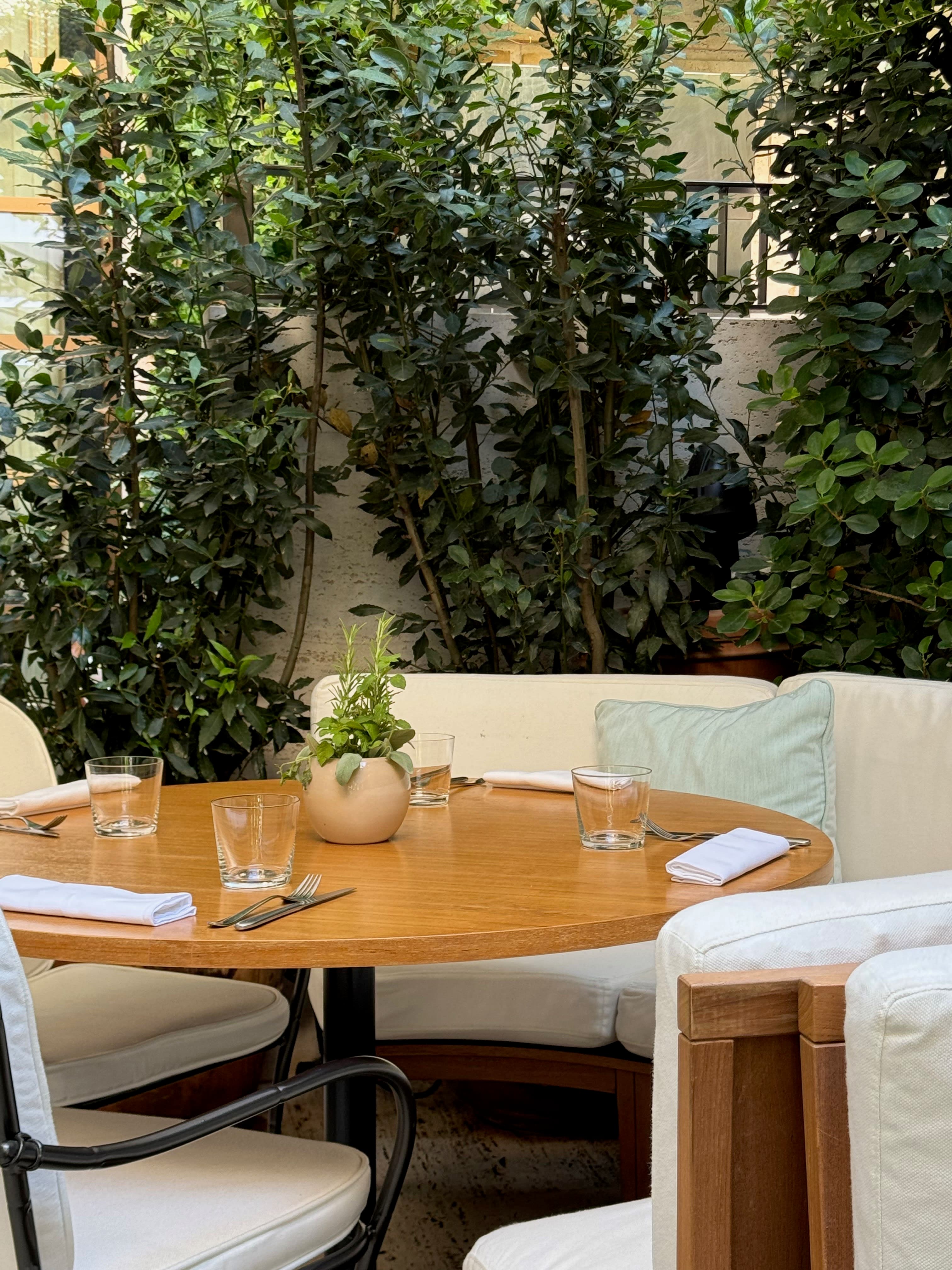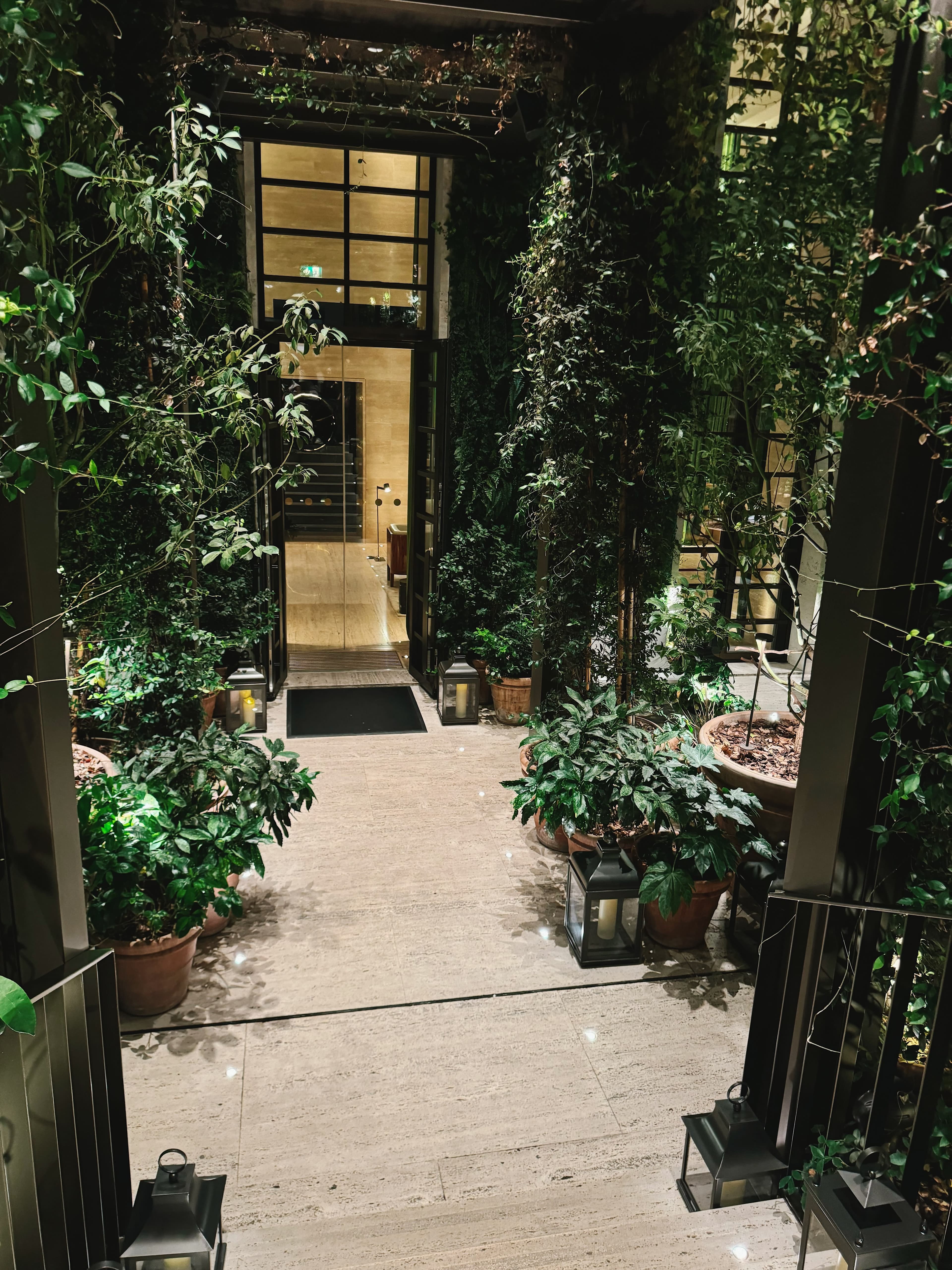 The Rome EDITION is tucked away on a small street with an unassuming facade. You are immediately transported into a lush oasis with a greenery-covered entrance and terrace. The high ceilings and coordinating colors of the lobby are particularly striking for those who appreciate the design of a hotel.