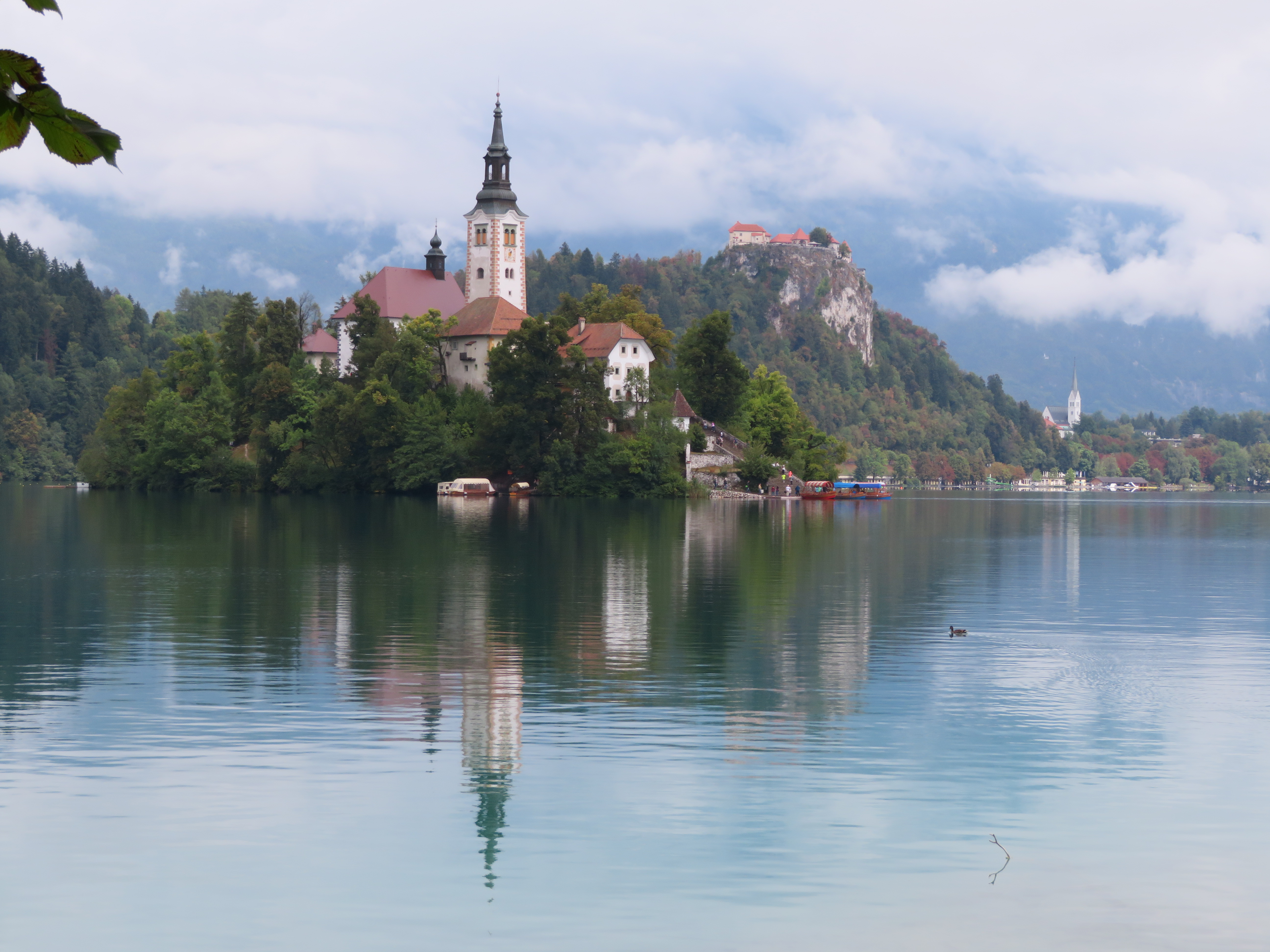 When the rain cleared up, we were stunned by the beauty of the Church of the Mother of God in the midst of the lake, especially with the castle and churches behind it. Cue the duck!