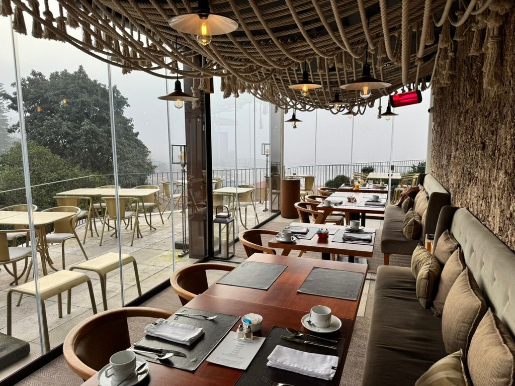 Breakfast terrace overlooking the Douro, even in the fog