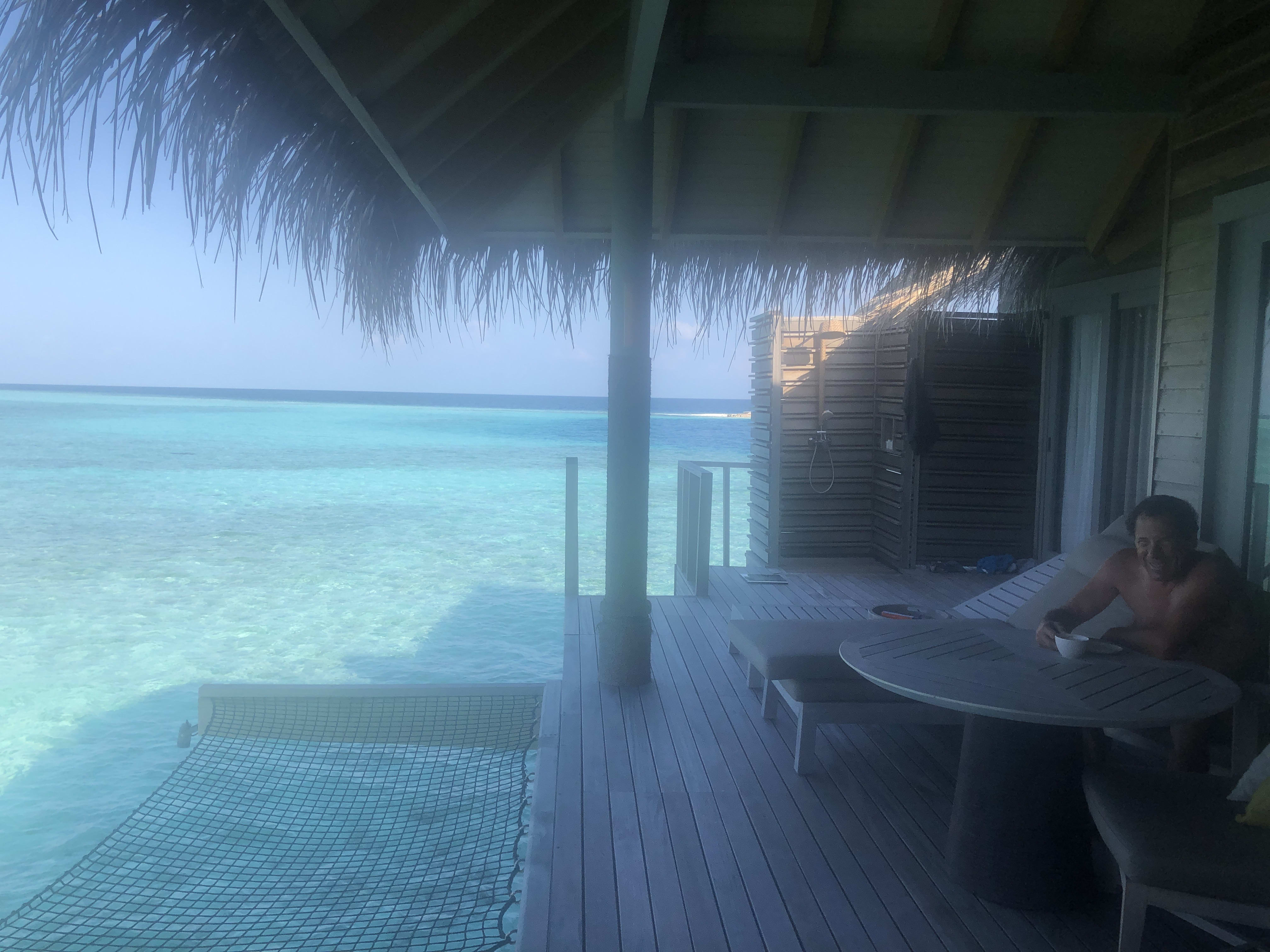 We had the best overwater villa without pool Room 245. It was beyond fantastic! Very private, uninterrupted expansive views of the lagoon in every hue of blues and greens. It was the last villa at the end of the pier and it was worth every penny. We were celebrating our anniversary and we were welcomed with champagne and chocolates when we arrived in our room.