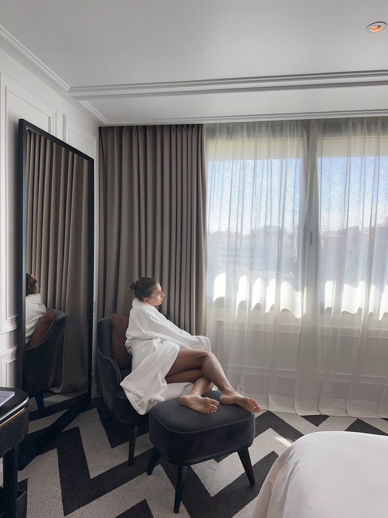 I stay in a Grand Premier Castellana room, offering 45 square meters of residential-style elegance with privileged views over the Paseo de la Castellana. From the entrance, the balance between classic luxury and contemporary design becomes clean, yet always with a welcoming, almost domestic atmosphere that instantly makes you feel at ease.