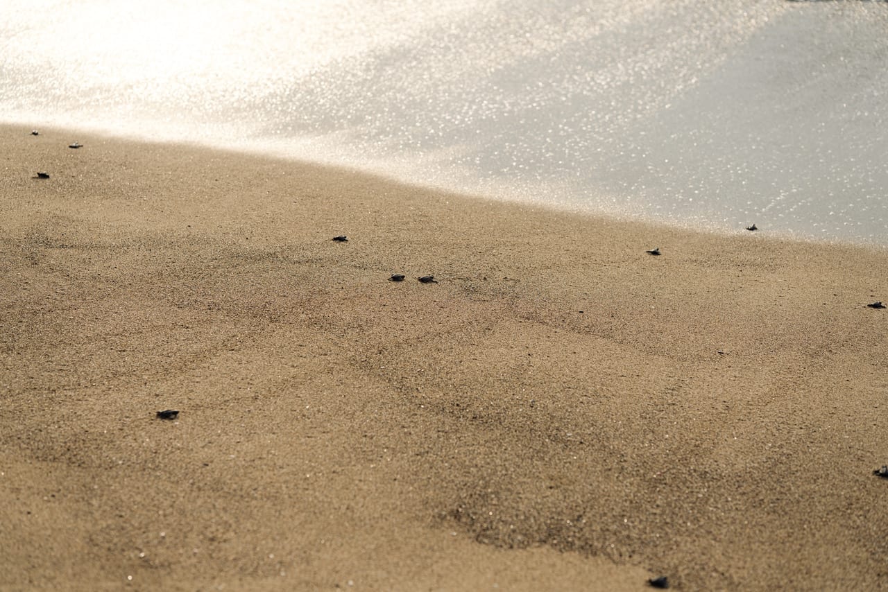 Hatchlings making their way to the ocean on Canalan Beach.