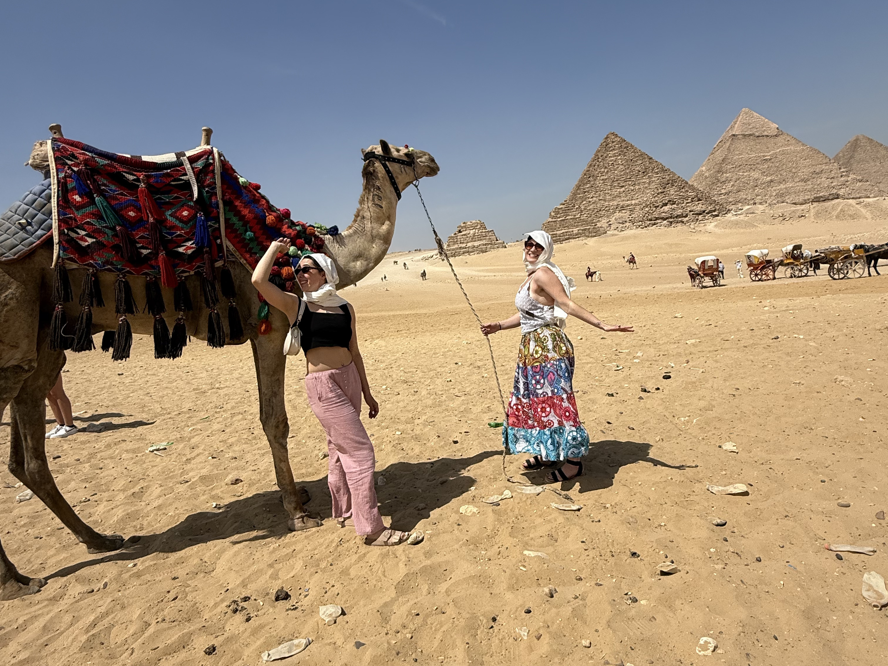 Fresh off our camel ride—this was in Cairo, but you can definitely find camels in Hurghada!