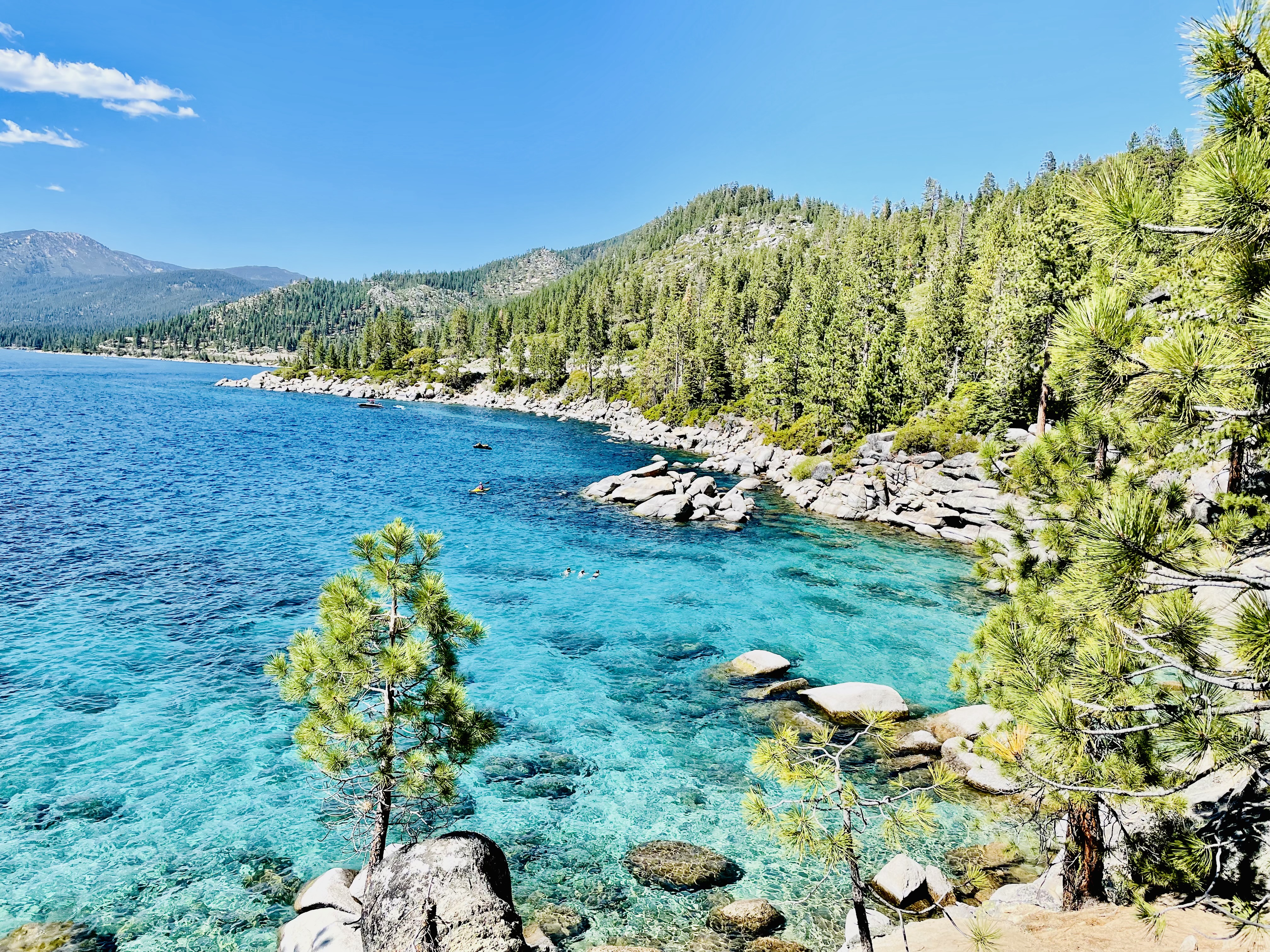 One of the things I love most about Tahoe is how much there is to explore around the lake. I’ve been to Sand Harbor countless times in the summer. It’s known for its crystal-clear water, giant granite boulders, and sandy beaches. Warm days here are perfect for swimming, paddleboarding, kayaking, snorkeling, picnicking, or just floating and soaking it all in. In the winter, it transforms into something completely different and just as beautiful, with snow-covered trees, quiet shoreline walks, and that peaceful, frozen-lake feel.