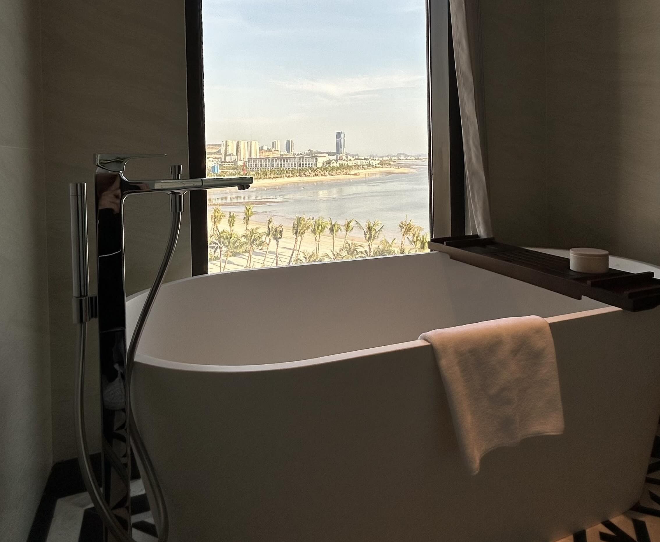 Our corner room offered expansive views over Halong Bay and felt more like a junior suite than a standard room. Everything was fresh, clean, and thoughtfully designed and reflected the property being newly opened.