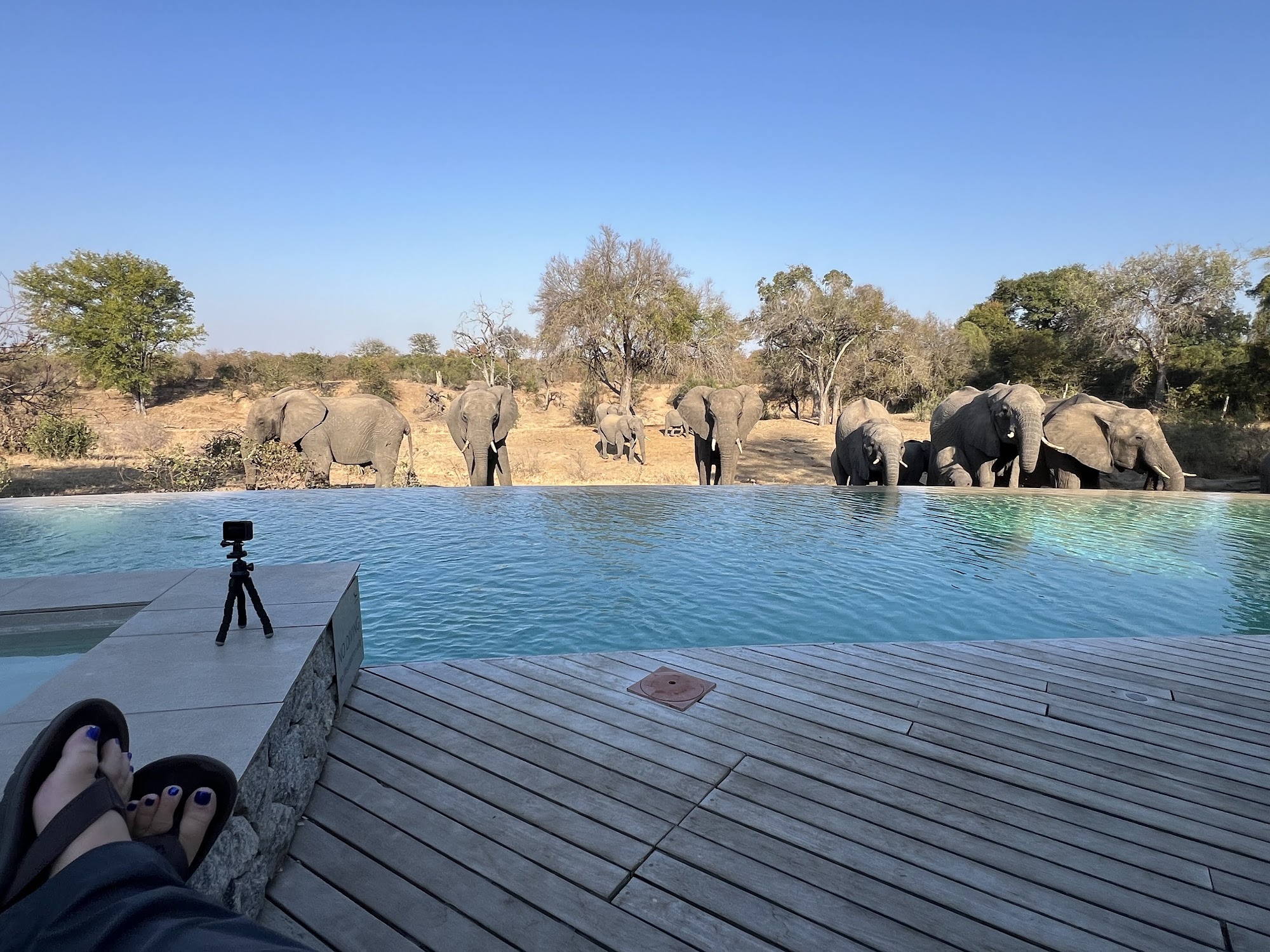 Elephants use the Ngala swimming pool as a watering hole